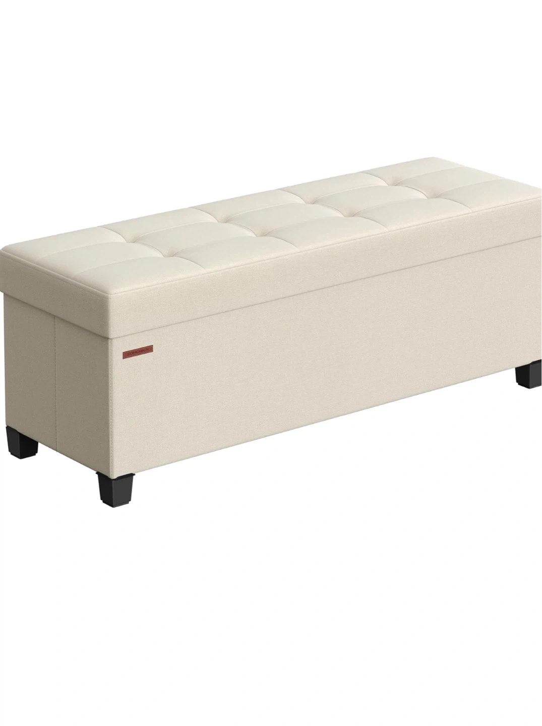 This SONGMICS storage ottoman bench is a versatile piece for your home. It offers a generous storage capacity with dimensions of 43" (110 cm) in length and 15.7" (40 cm) in height. It's built to hold up to 660 lb (300 kg) of static load capacity. Use it for extra seating or to keep blankets and other items tidy!