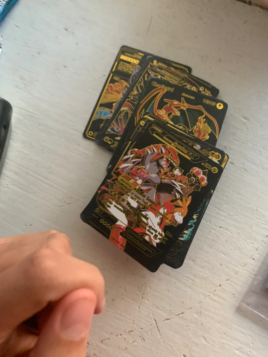 Set of collectible Pokemon EX cards featuring black and gold designs. Cards include Greninja EX, Charizard, and other popular Pokemon. These cards are a great addition to any Pokemon collection!