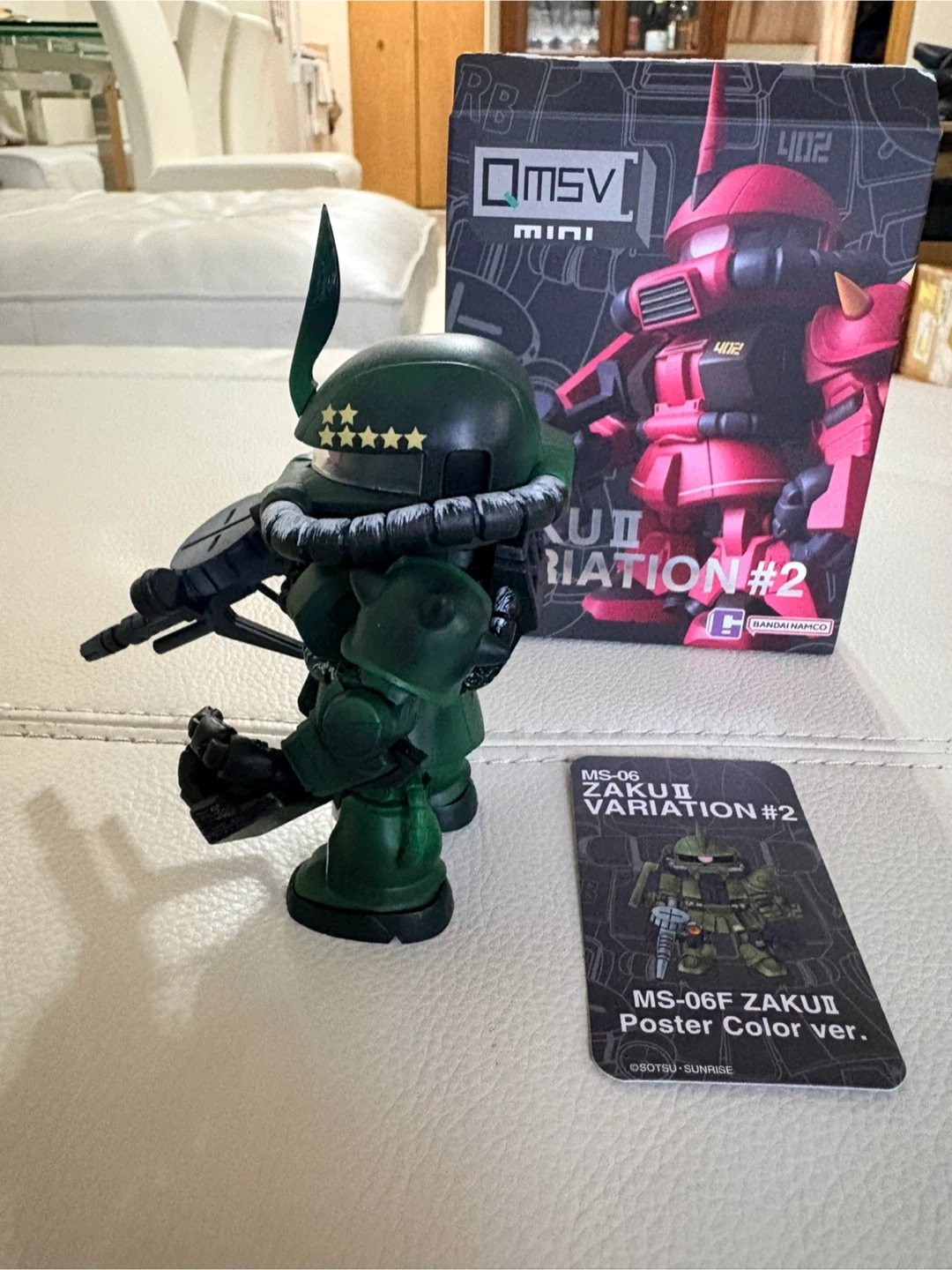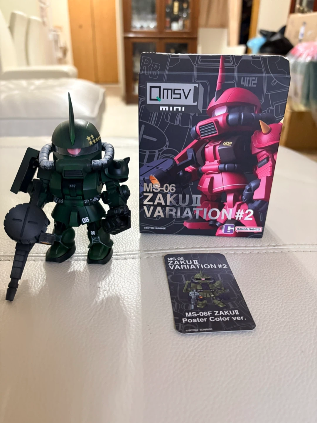 Selling a QMSV Mini MS-06F Zaku II Variation #2 figure. It comes with the box and a poster colour version card. A great addition to any Gundam collection!