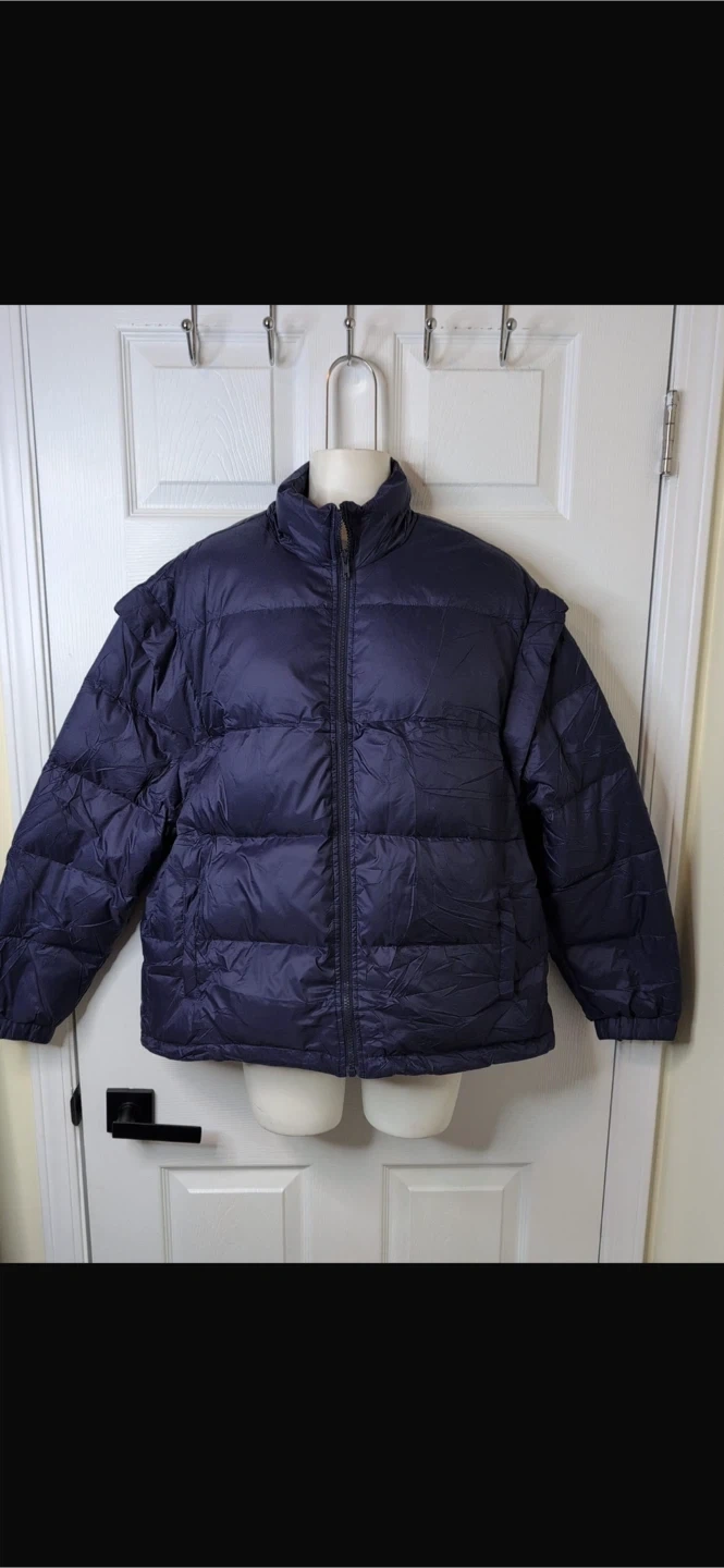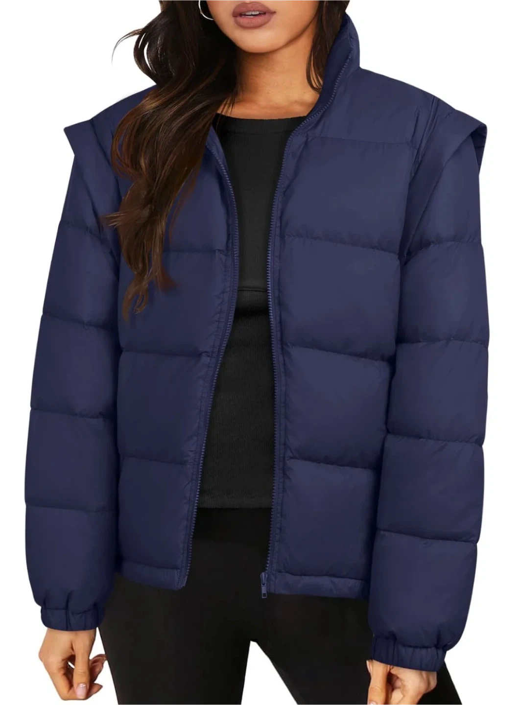 NEW! MEROKEETY NAVY DETACHABLE SLEEVES OVERSIZED PUFFER JACKET