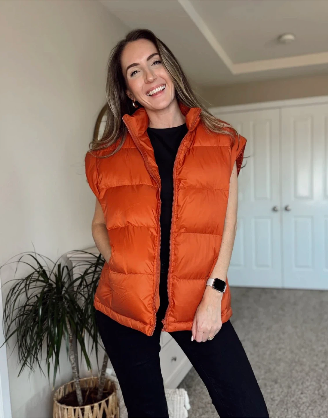 This puffer jacket is designed with removable zipper sleeves, allowing you to transform it into a vest whenever you desire. The oversized look adds a trendy touch to any outfit, keeping you warm, and has room to wear sweaters underneath! Pair it with jeans and boots for a chic winter look.
