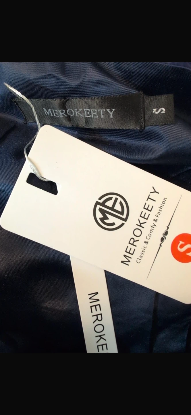NEW! MEROKEETY NAVY DETACHABLE SLEEVES OVERSIZED PUFFER JACKET