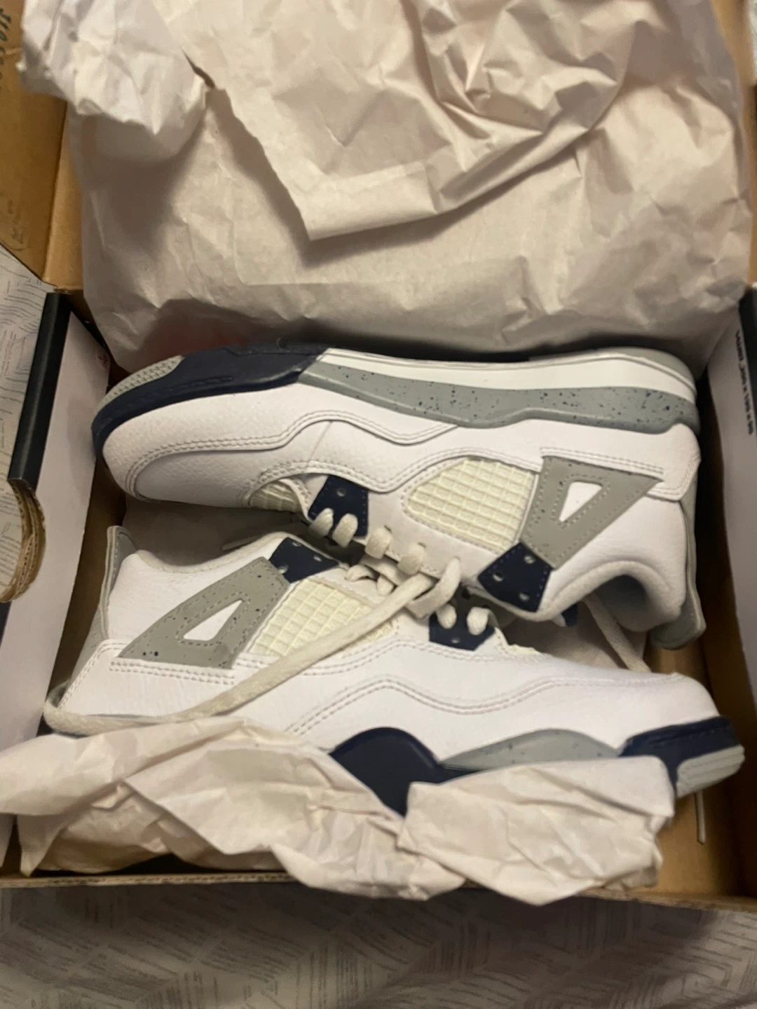 Pre-owned Jordan 4 Retro PS "Cool Grey" sneakers for little kids. These are a size 2 Youth. They come in their original box. Great for young sneakerheads!