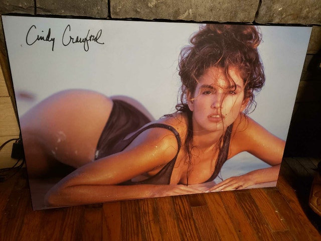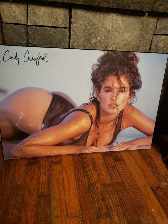 Own a piece of pop culture history with this signed Cindy Crawford poster! This vintage poster is in good condition, ready to add a touch of glamour to any room. This autographed poster of Cindy Crawford is a great addition to your collection. I'm decluttering, and it's time for this beauty to find a new home. If the ad is up, it's still available!