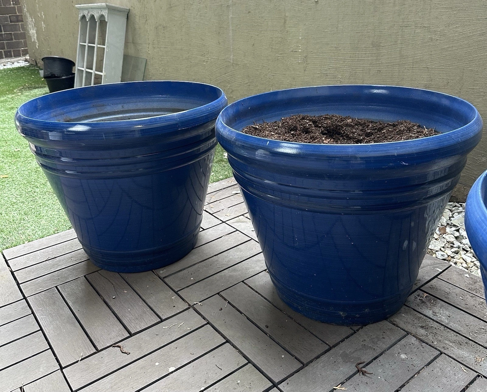 2 Large Outdoor Planters Glossy Blue – $25 EA or $50 for two 🧡