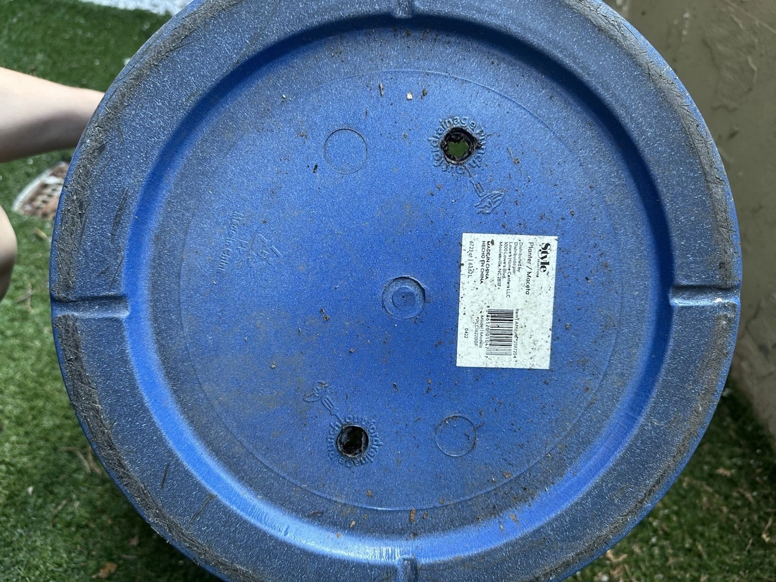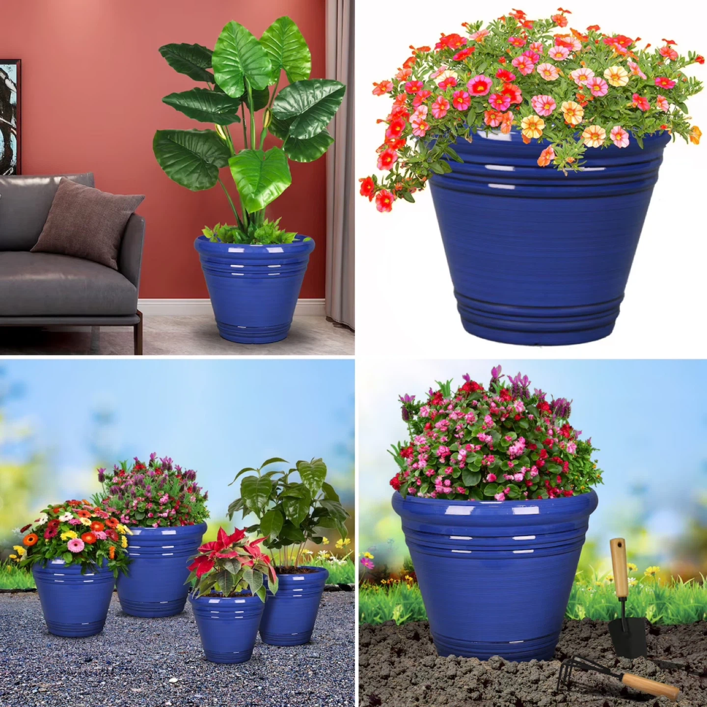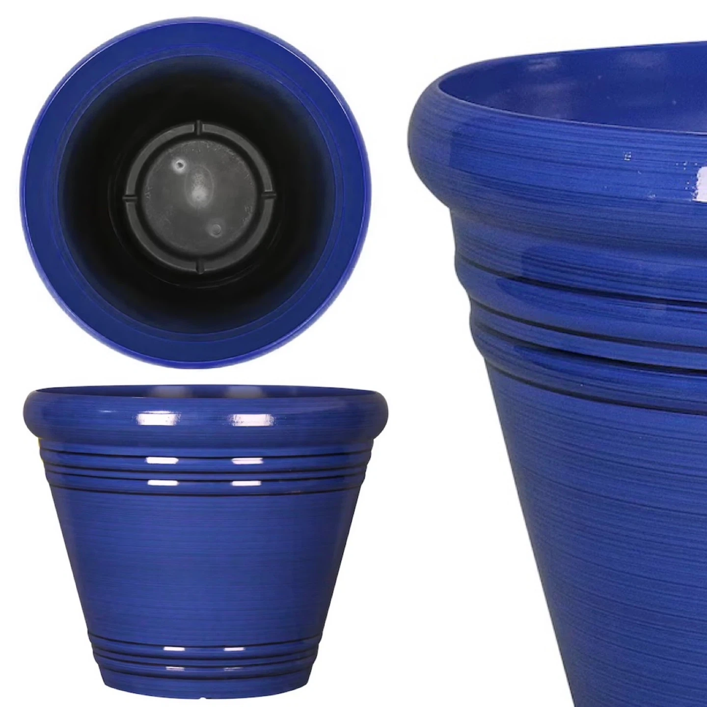 Description: Upgrade your outdoor space with these Jumbo Style Selections planters in a glossy blue finish. These are extra-large, heavy-duty planters made from durable recycled polyresin plastic—weather-resistant, UV-protected, and surprisingly lightweight when empty.