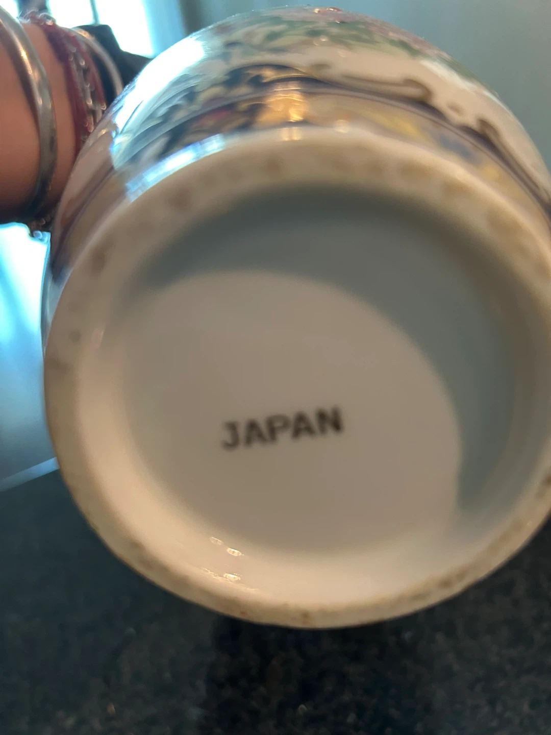 A lovely ceramic vase featuring a detailed peacock and floral pattern. It's beautifully crafted with a gold trim around the rim and neck.