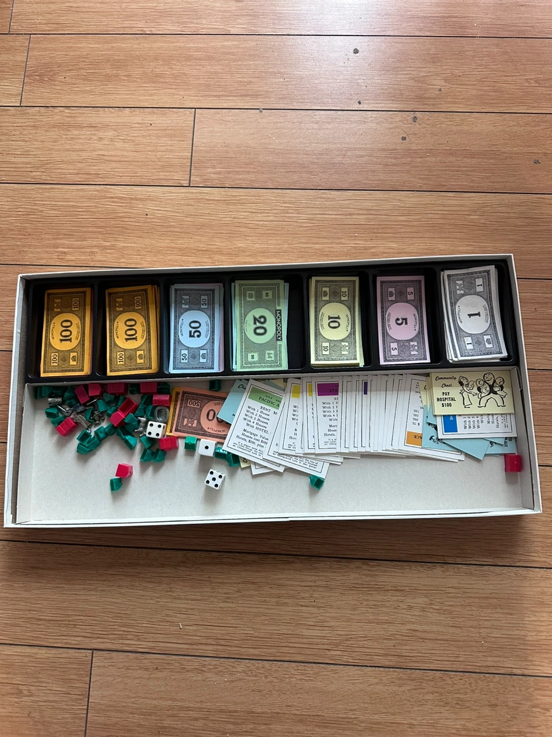Classic Monopoly board game for the whole family. It includes money, properties, Chance cards, and Community Chest cards. Play it with friends and family!