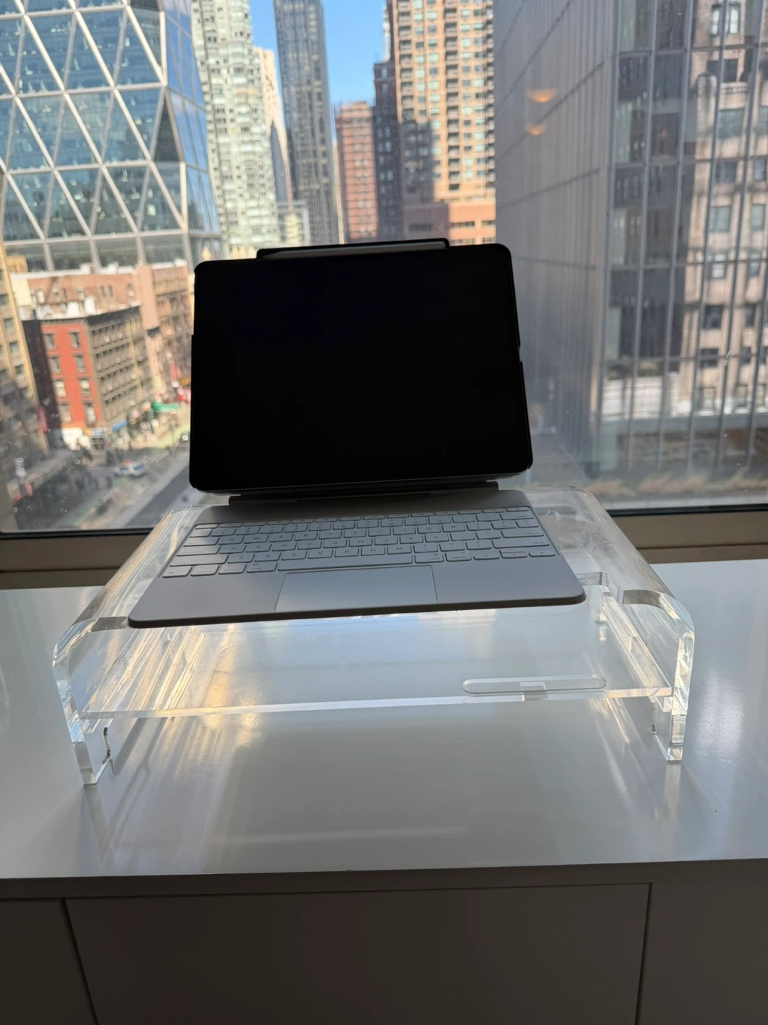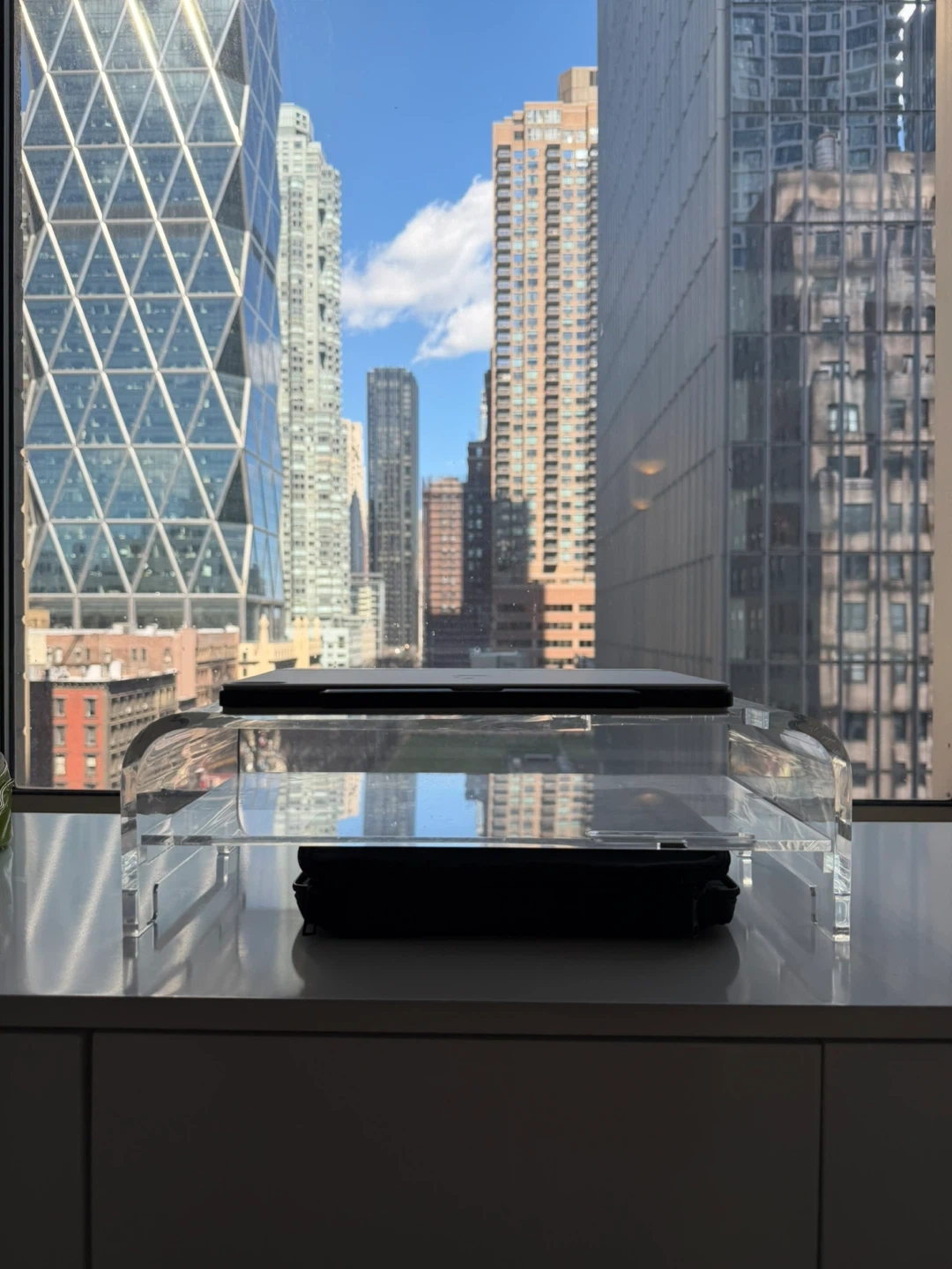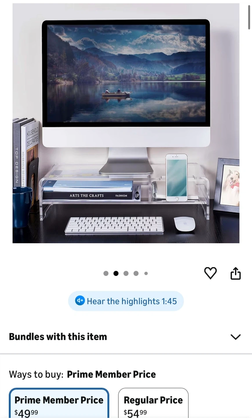 This clear acrylic monitor stand is perfect for elevating your laptop or monitor. Its minimalist design complements any desk setup. Raises screen to a more ergonomic viewing height.