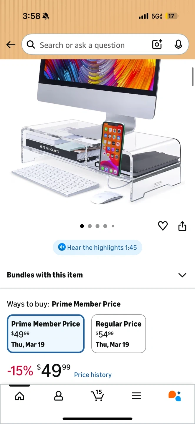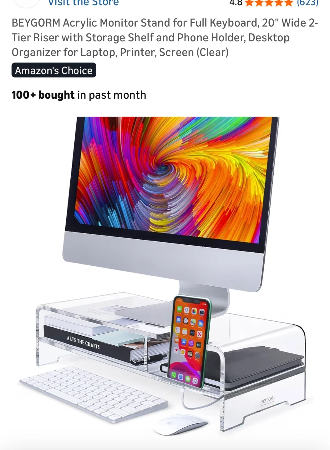 This clear acrylic monitor stand is perfect for elevating your laptop or monitor. Its minimalist design complements any desk setup. Raises screen to a more ergonomic viewing height.
