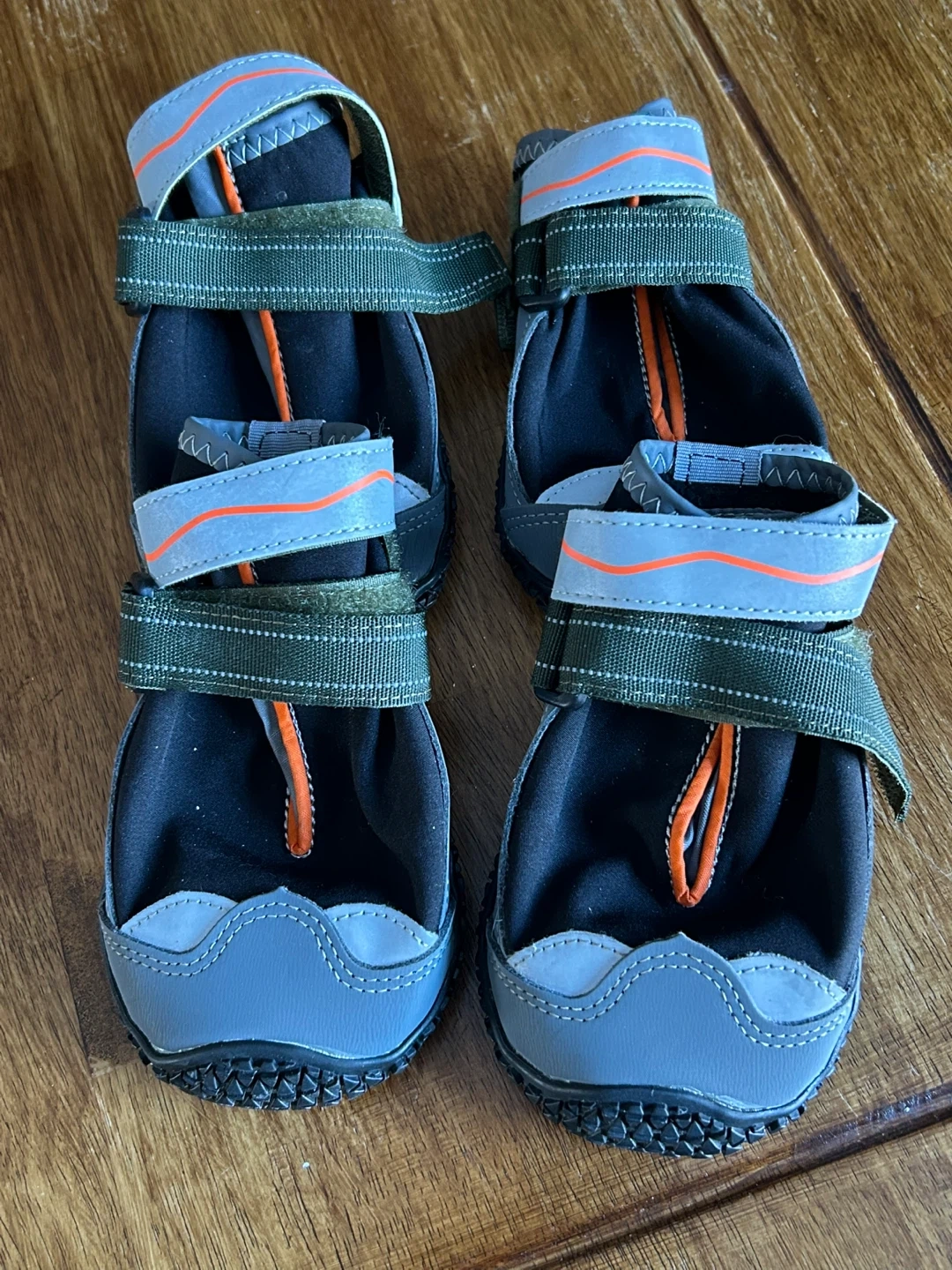 Set of four EIGHT brand dog boots, size 8. These boots feature a durable sole and adjustable straps for a secure fit. Protect your dog's paws from rough terrain and hot surfaces!