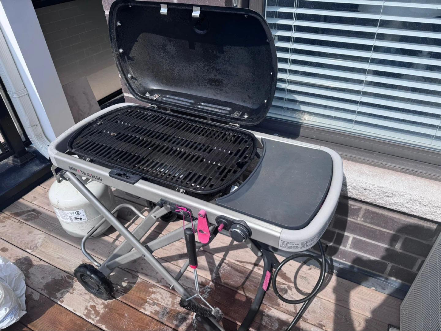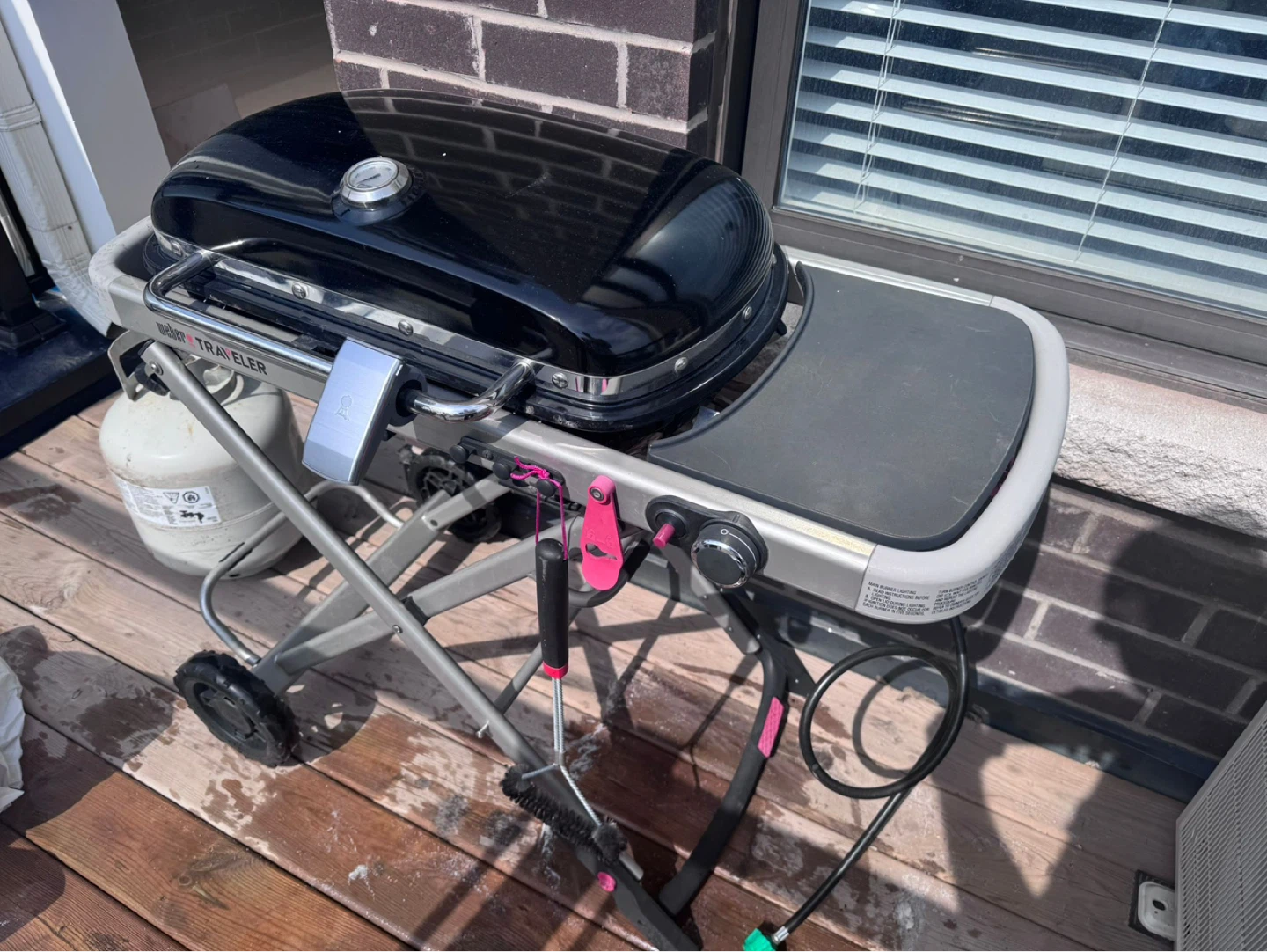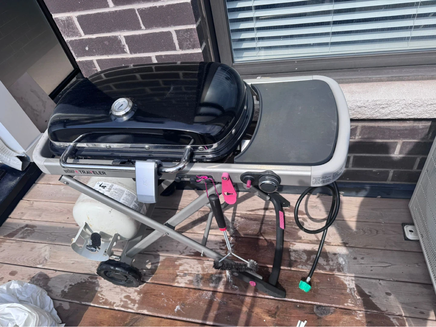 Perfect time to grab a high-quality portable grill for the season. This Weber Traveler Portable Gas Grill is in great condition and comes as a full bundle.