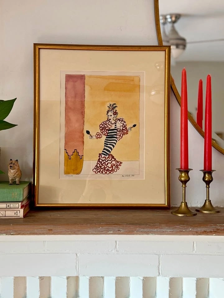 vintage art, original watercolor, fashion illustration, 1970s art, mid century decor, theatrical art, costume design, signed artwork, Canadian artist, wall art, interior decor, gallery wall, vintage illustration, eclectic decor, Hollywood Regency, collectible art, framed art, retro decor, unique artwork, statement art