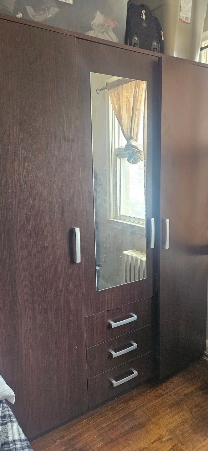 "Dark Wood Wardrobe with Mirror and Drawers" π₯