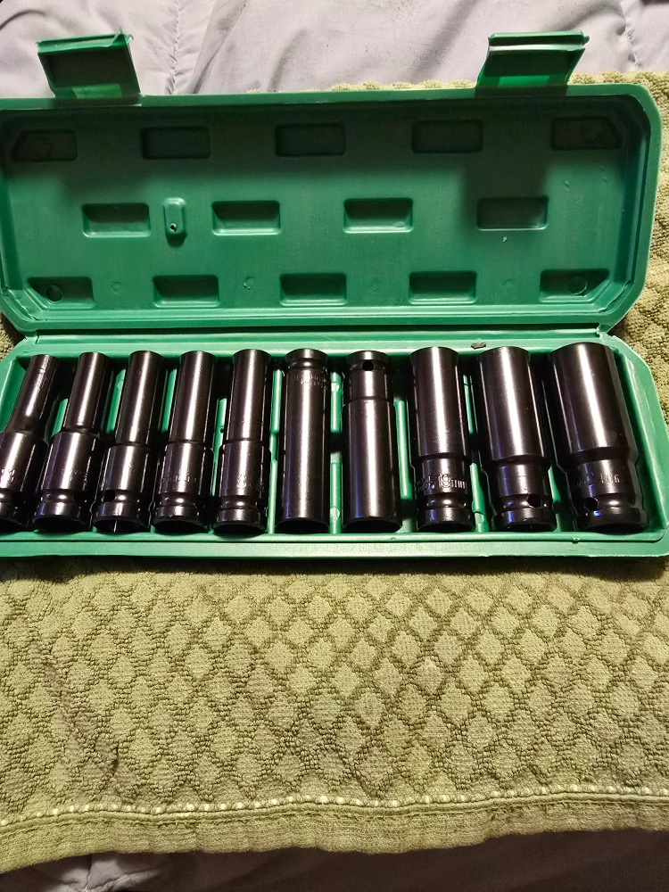 Selling a set of impact sockets. They come in a green case to keep everything organized. Great for any mechanic or DIY enthusiast!
