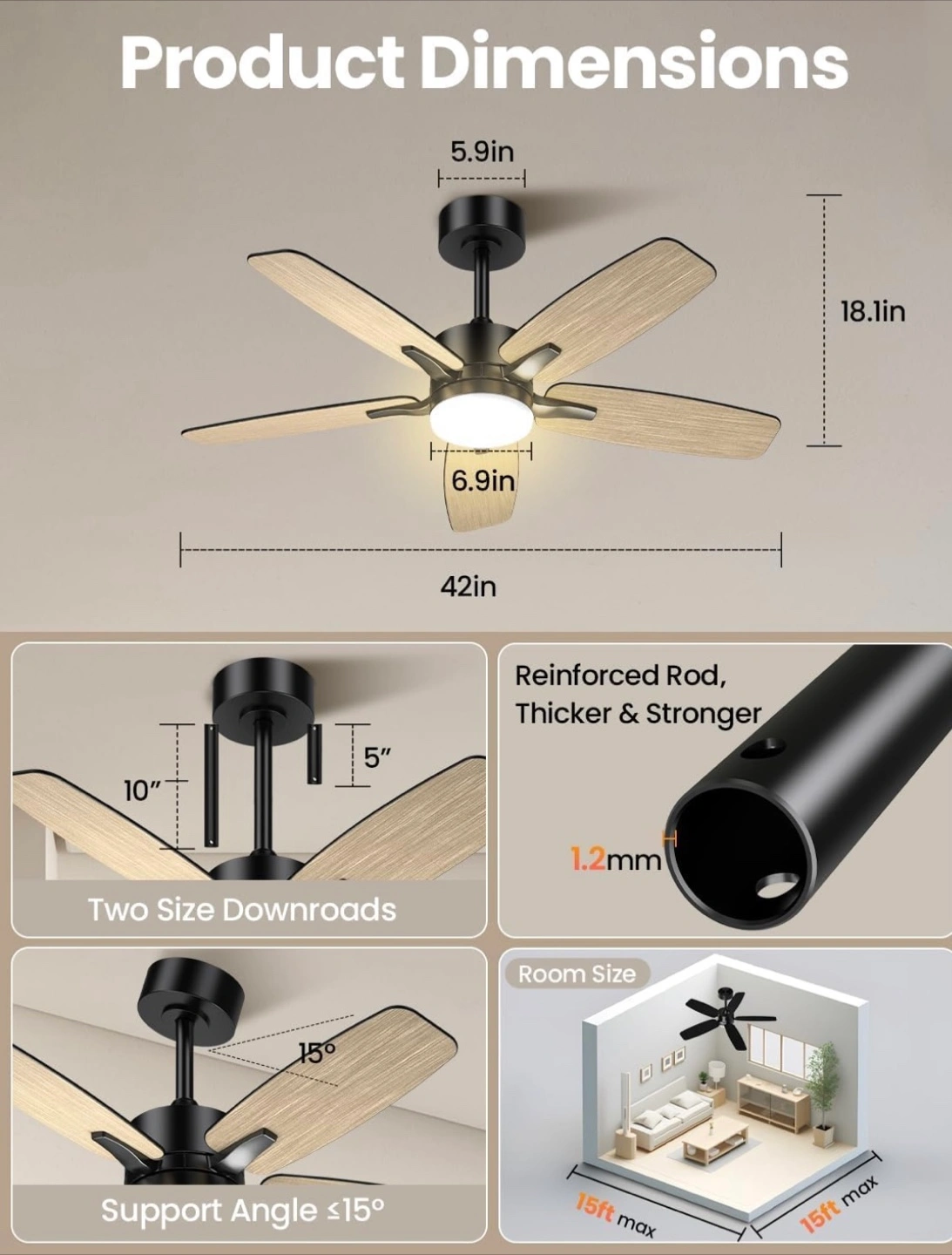 - Room Size: 15ft max x 15ft max