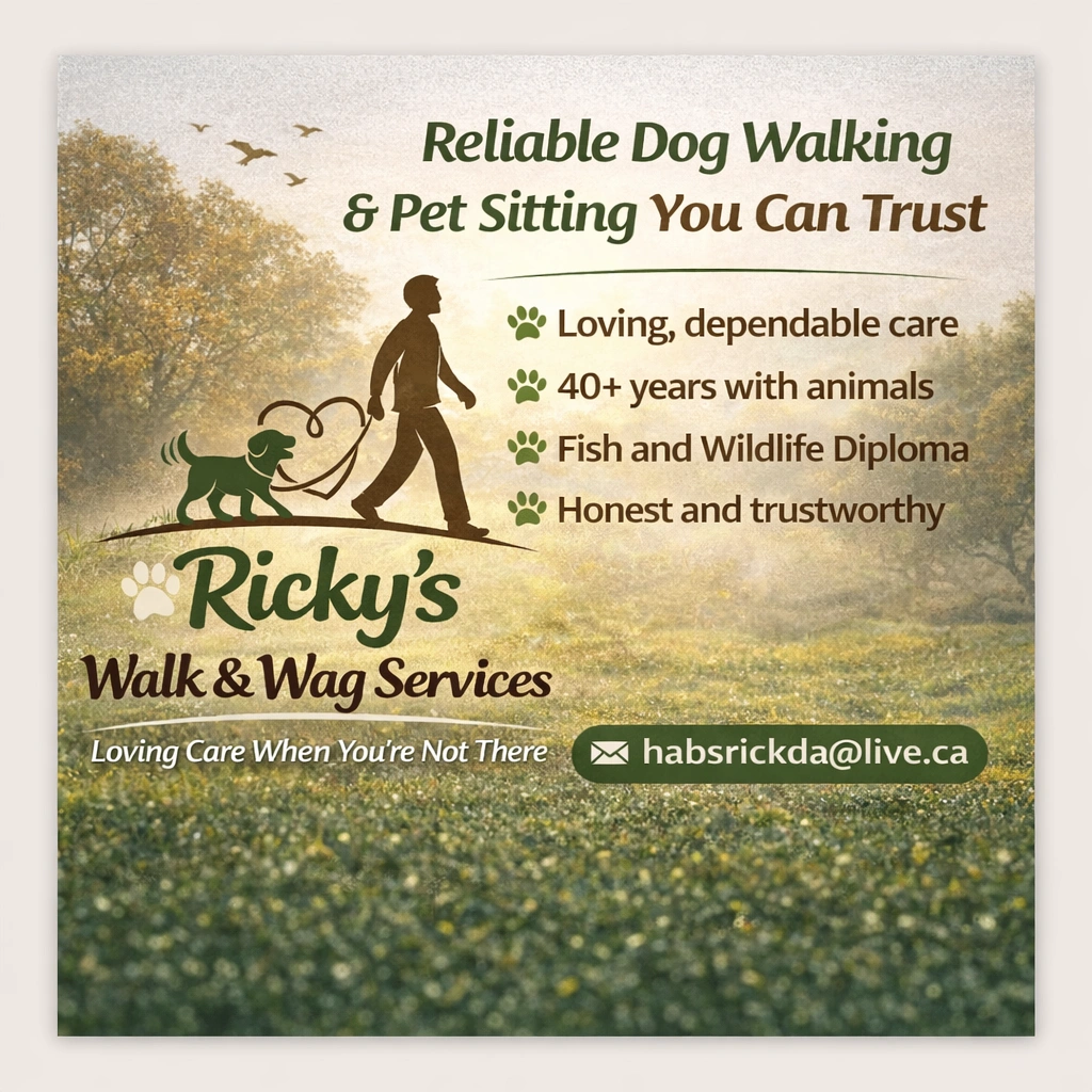 I bring over 40 years of hands-on experience with animals, including dogs of all breeds and sizes. I also hold a Fish and Wildlife Technician diploma from Fleming College, which strengthened my knowledge of animal behavior, care, and respect for the natural world. I’m very passionate about the outdoors and wildlife, and my biggest lifelong hobby is fishing, which has kept me deeply connected to nature and animals throughout my life. I am a kind, patient, active, and trustworthy person with deep respect for all animals and God’s creations, and I treat every pet as if they were my own.