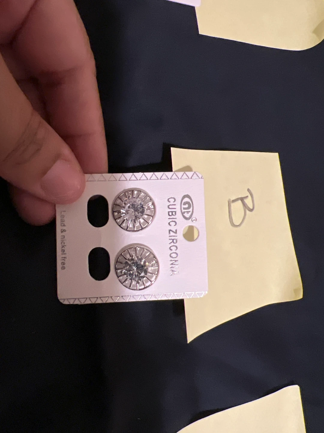 - Option B is a pair of cubic zirconia earrings that are lead and nickel free.