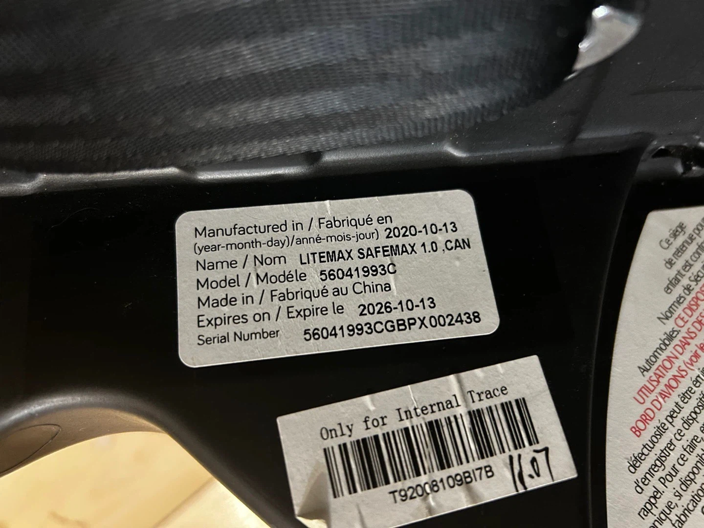 Evenflo infant car seat and base. Grey and black fabric. It has a 5-point harness. This car seat is suitable for infants.