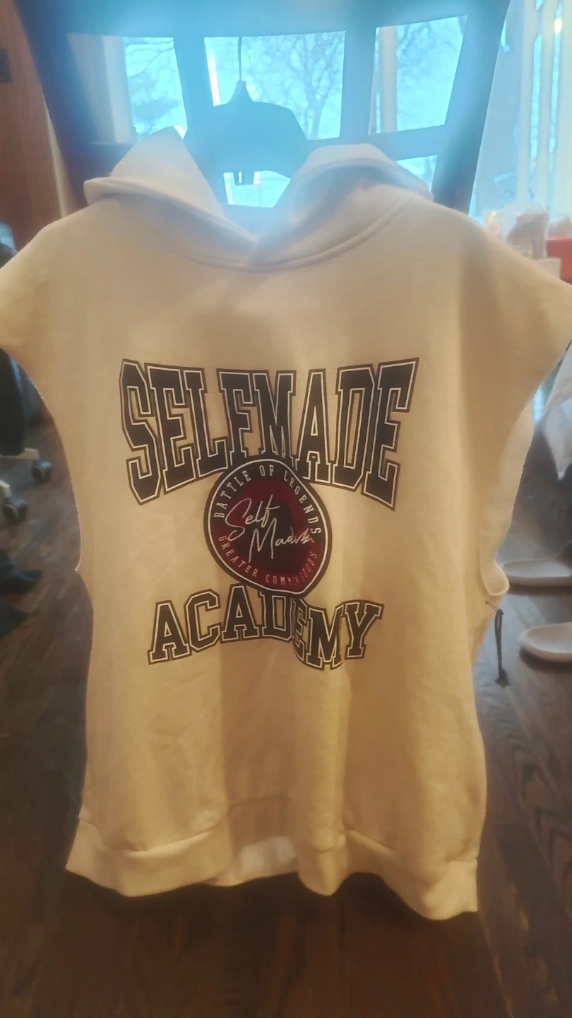 Selling a Selfmade Academy sleeveless hoodie! It's a stylish and unique piece to add to your wardrobe. Great for layering or wearing on its own during warmer weather