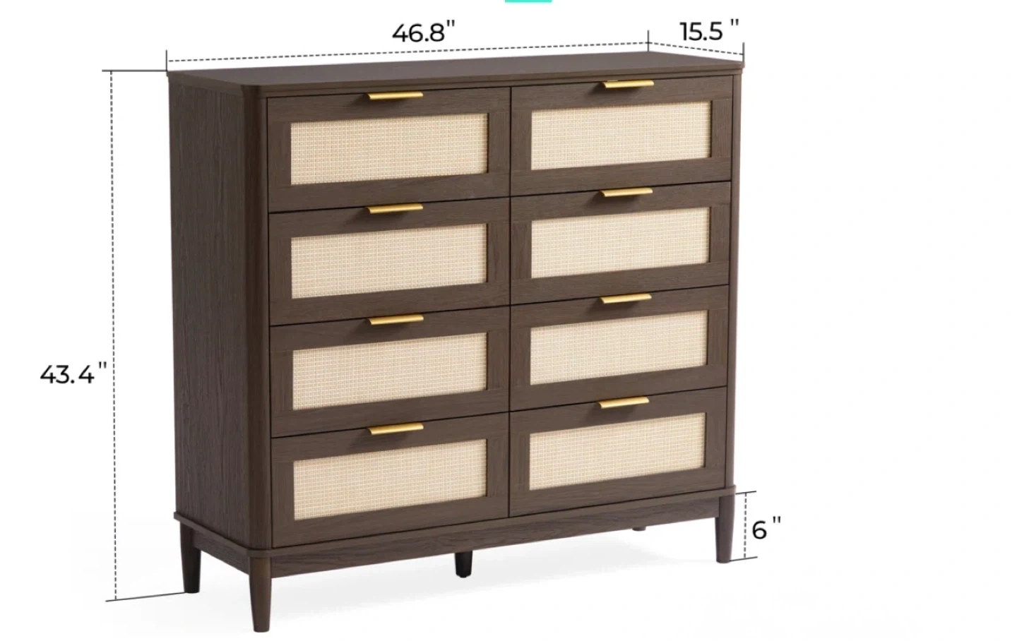 Dimensions are 46.8" W x 15.5" D x 43.4" H.