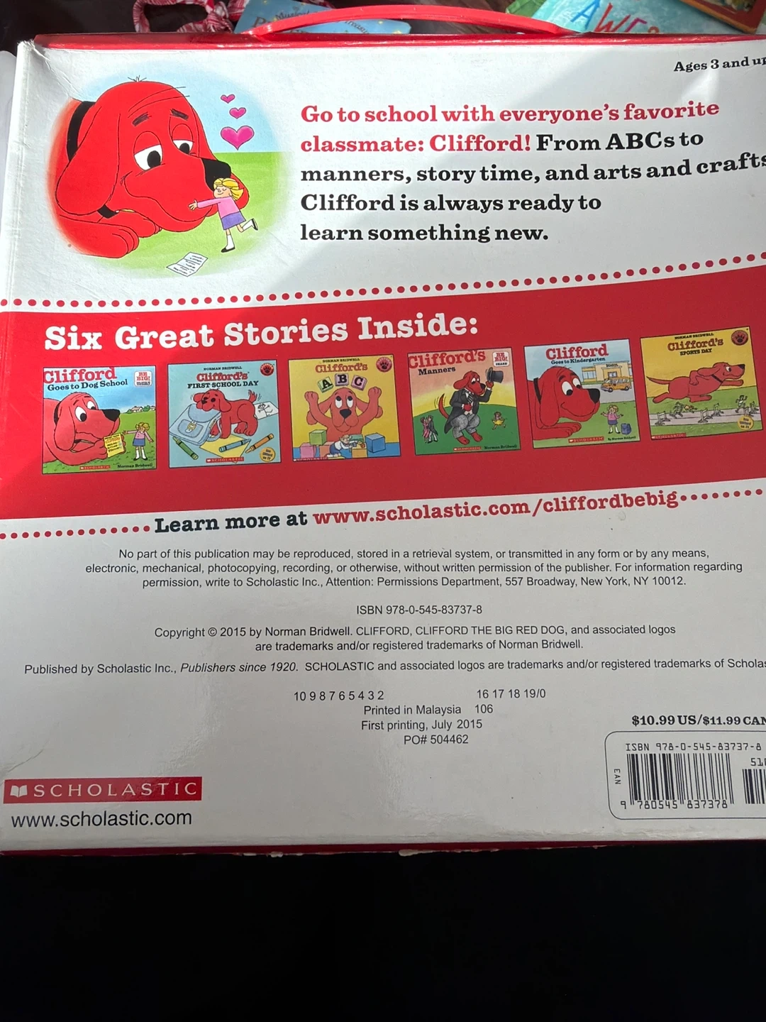 This Clifford's School Story Box includes six great stories about Clifford. It's from Scholastic, copyright 2015. Great for young readers learning about school!