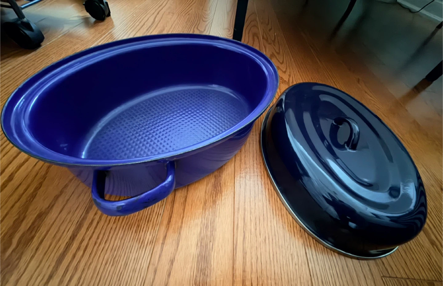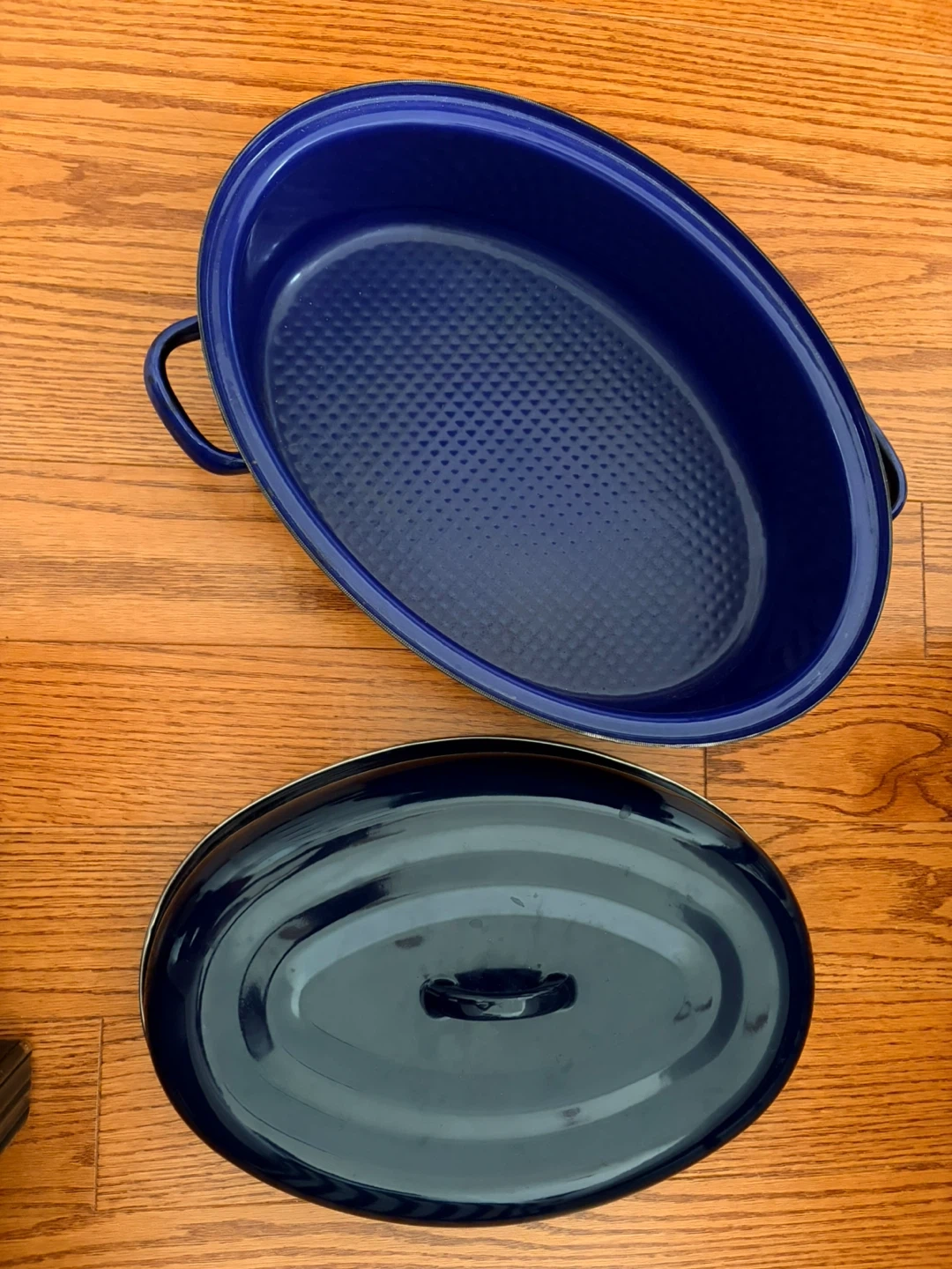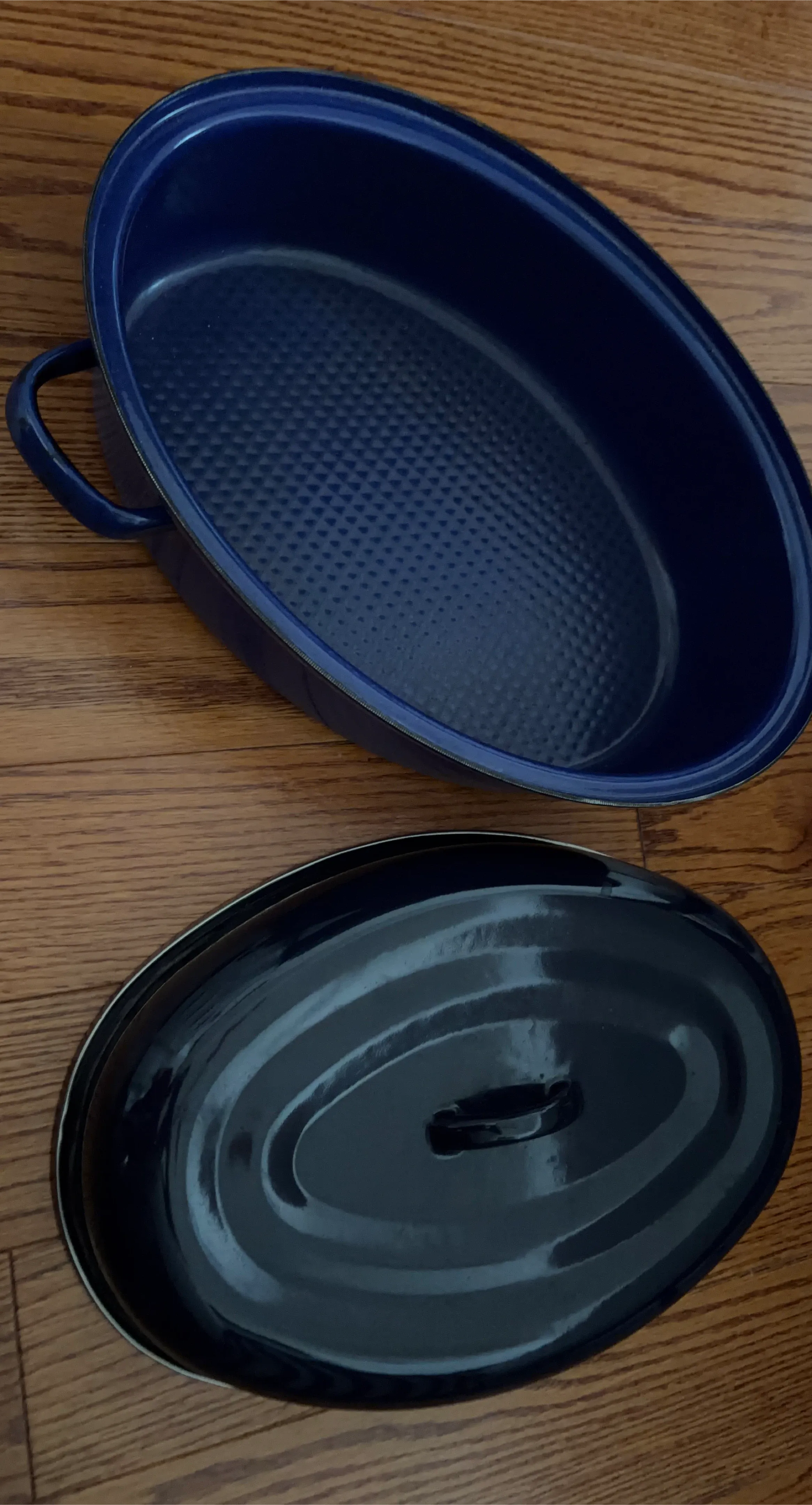 Buy & SellEnamel Roasting Pan with LidEnamel Roasting Pan with Lid$25Oval blue enamel roasting pan. It comes with a matching lid. Great for cooking roasts or stews!WHERE TO MEETCheck LocationView MapSELLERIssaAurora Centre W191 review0 chats·2 favorites·8 viewsSEND CHAT TO SELLERHi Issa! I’m interested in your listing.Hi Issa! I’m interested in your listing.Get the Karrot app to chatSign In to chat