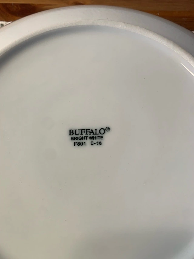 I'm selling sets of twelve (12) Buffalo Bright White F801 C-18 restaurant-quality deep accent plates that measure 11 3/8 inches. These plates are in excellent, new in box condition, ready to elevate your dining experience, whether it's for everyday use or special occasions. They're perfect for showcasing your culinary creations! These plates have never only been used.