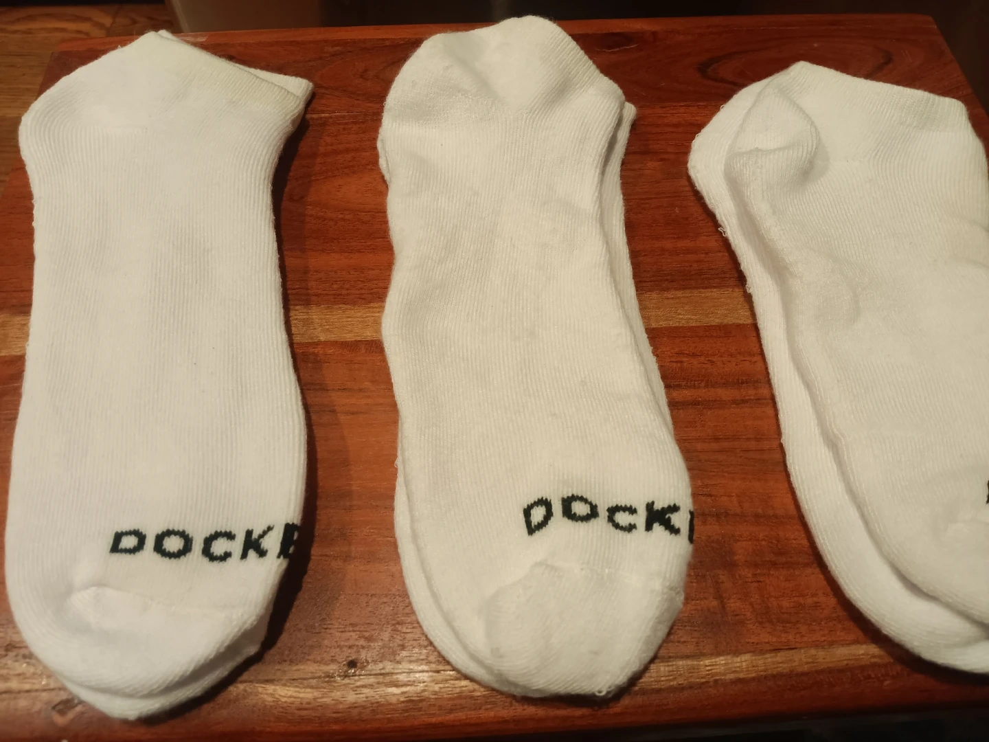 Three pairs of white Dockers ankle socks. These socks are made from a soft, comfortable material. Perfect for everyday wear! 3 pairs $2