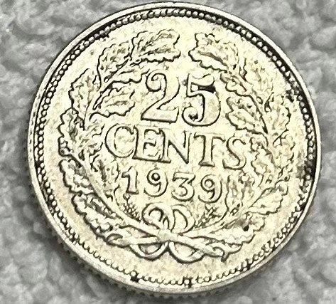 Up for sale are Netherlands 25 Cents coins from 1919 and 1939, featuring Queen Wilhelmina. Perfect for any collector! Add a piece of history to your collection.