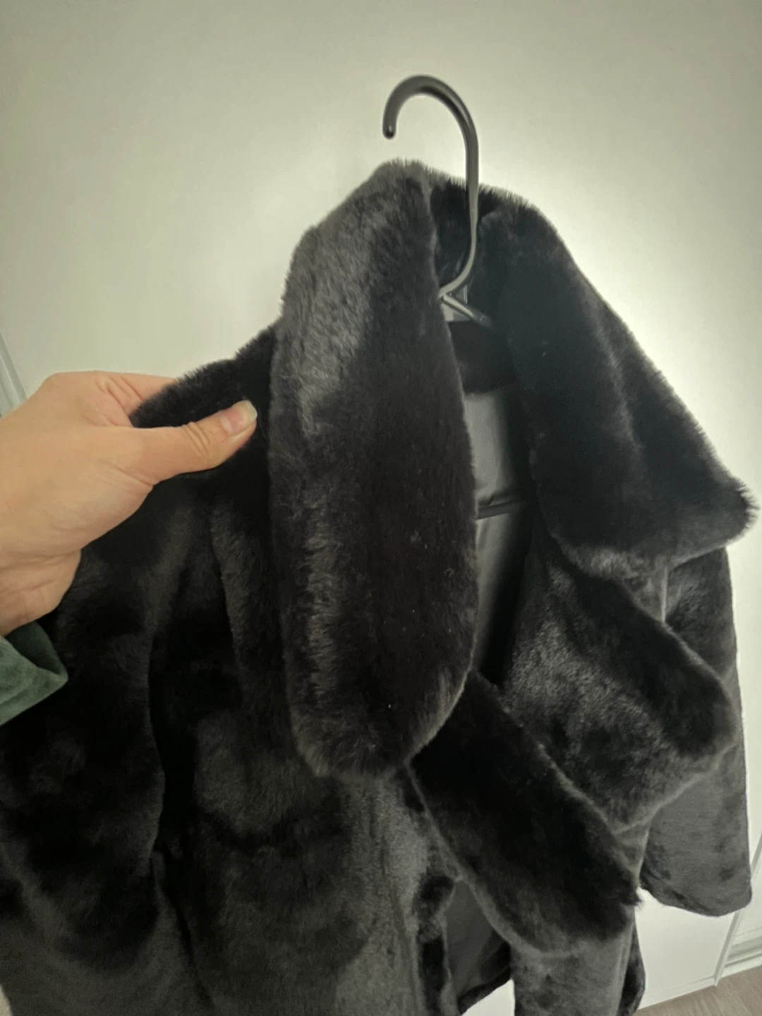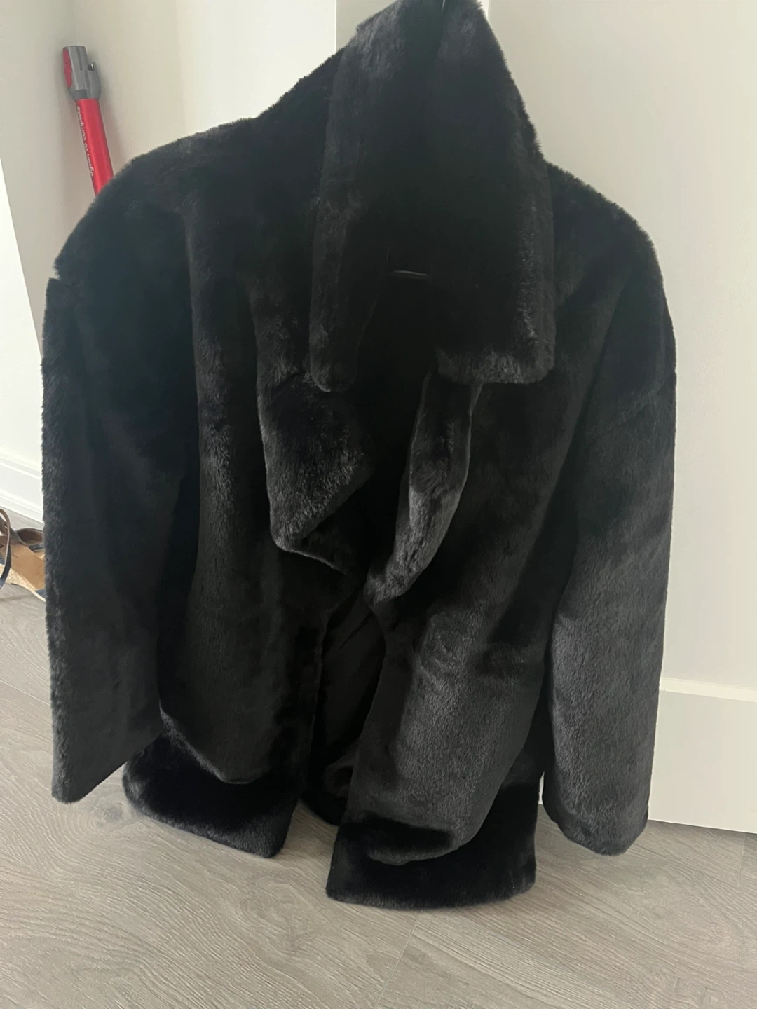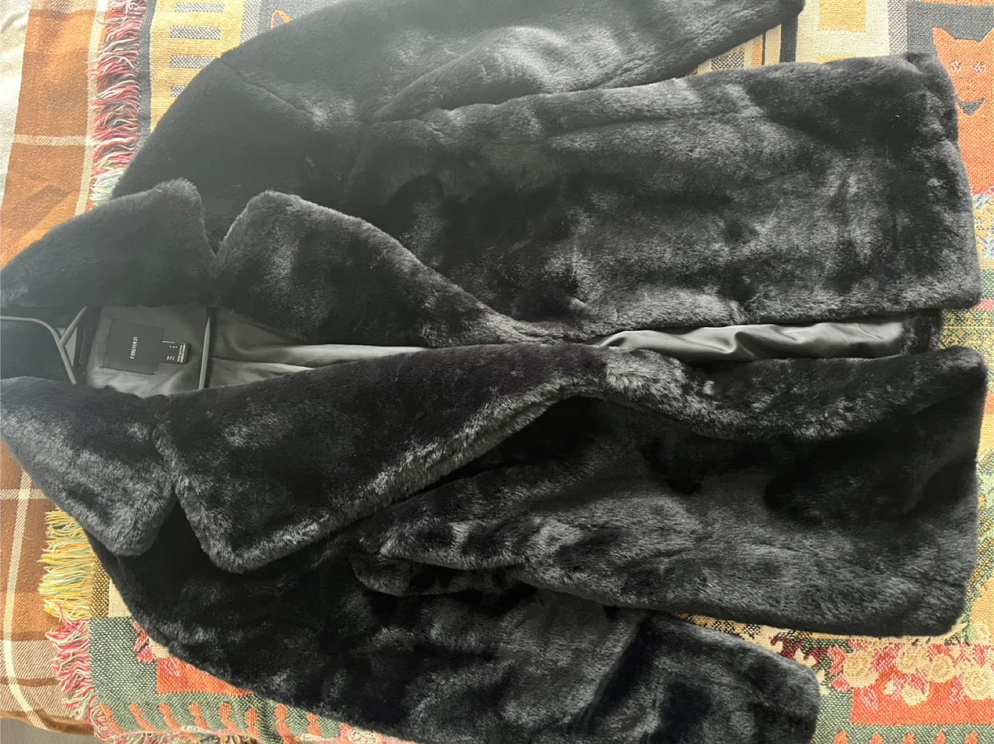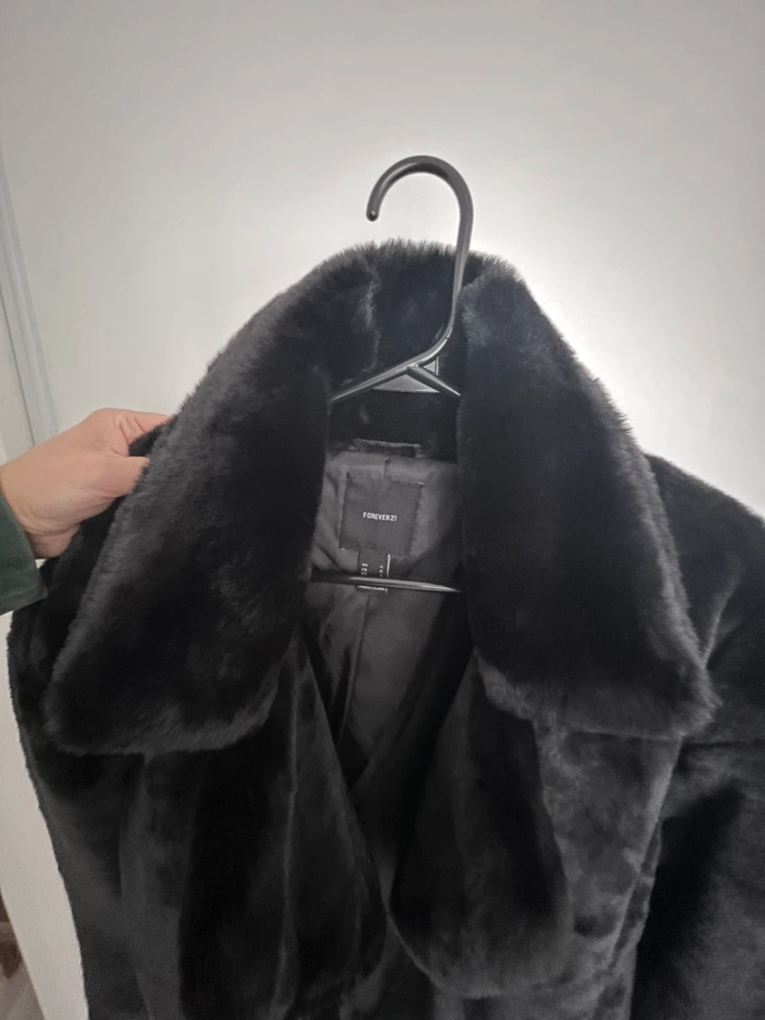 Warm and stylish black faux fur coat from Forever 21. It's fully lined and features a wide collar. Perfect for colder days!