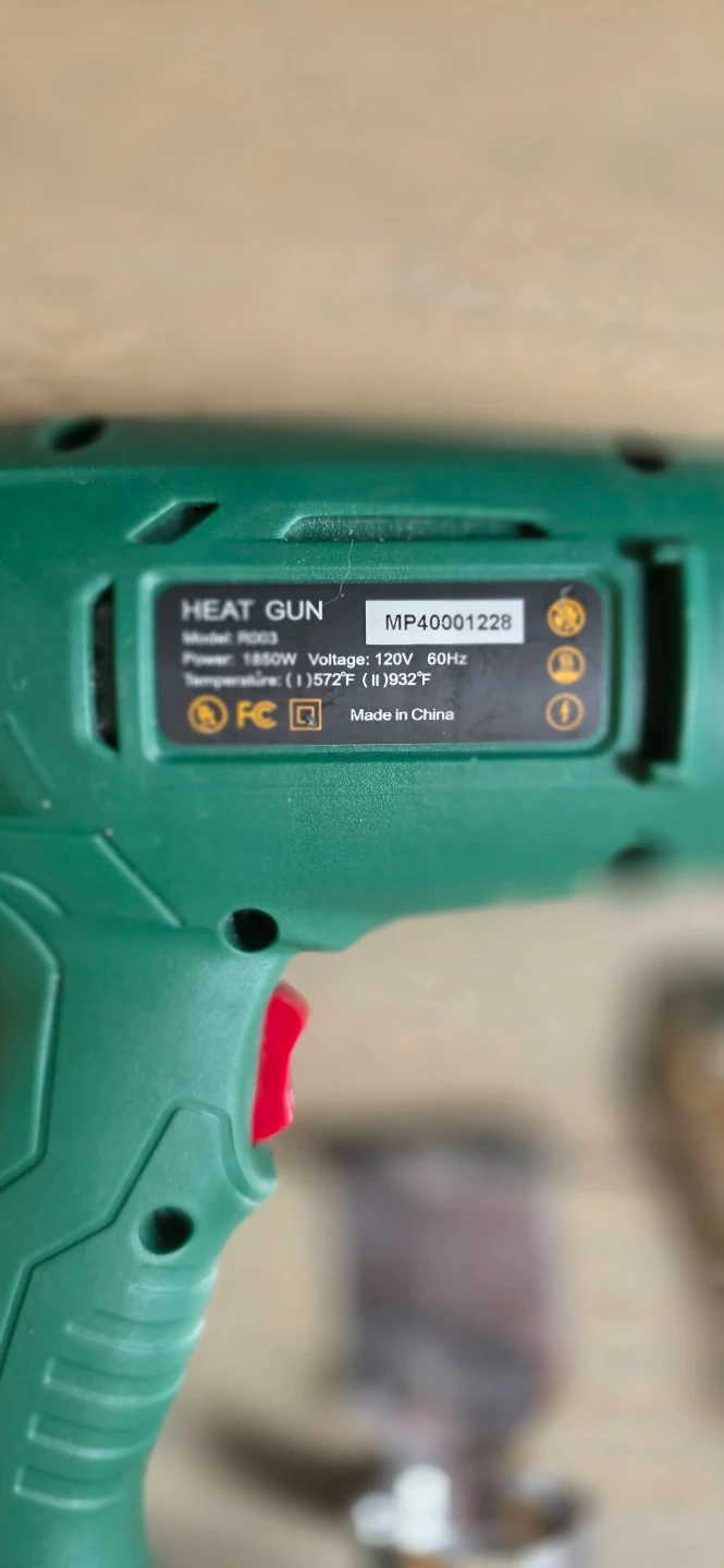 This is a heat gun. It's model RG63 and comes with multiple nozzles. Power is 1800W and it has dual temperature settings, 572°F (300°C) and 1022°F (550°C).