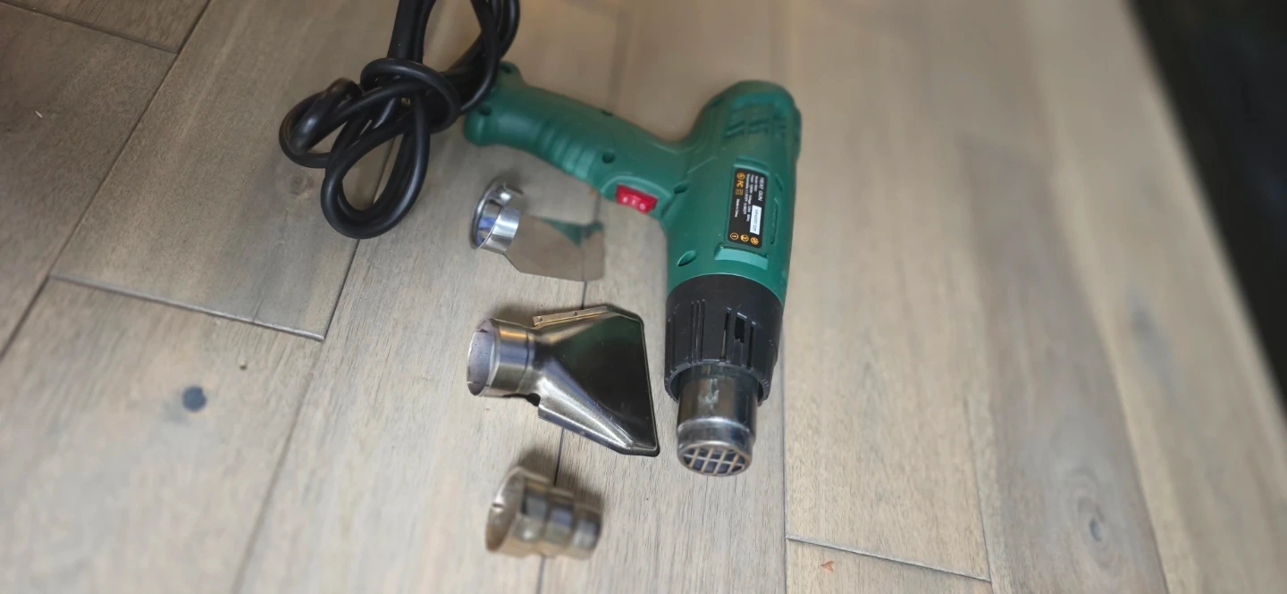 This is a heat gun. It's model RG63 and comes with multiple nozzles. Power is 1800W and it has dual temperature settings, 572°F (300°C) and 1022°F (550°C).
