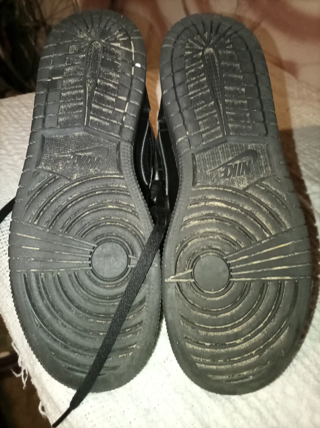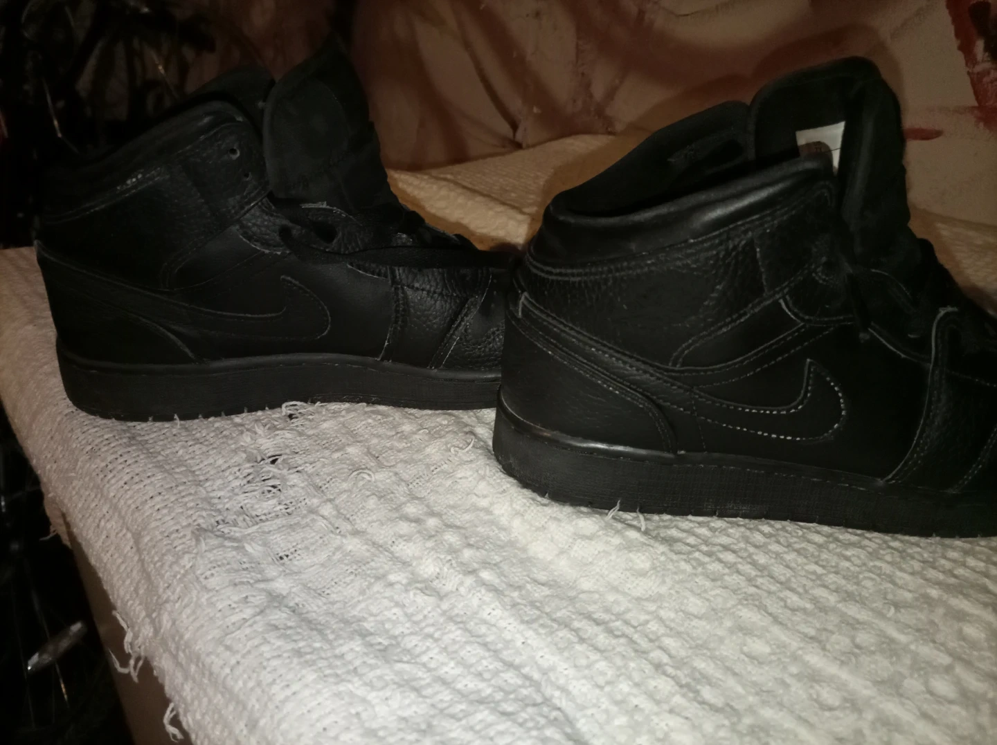 Selling a pair of Nike Air Jordan 1 Mid in black. They are size 7Y. Gently used , Ladies and gentlemen, black leather never go out of style.