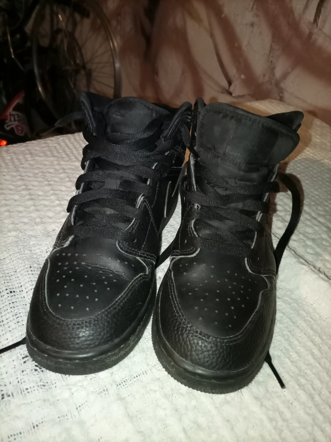 Selling a pair of Nike Air Jordan 1 Mid in black. They are size 7Y. Gently used , Ladies and gentlemen, black leather never go out of style.