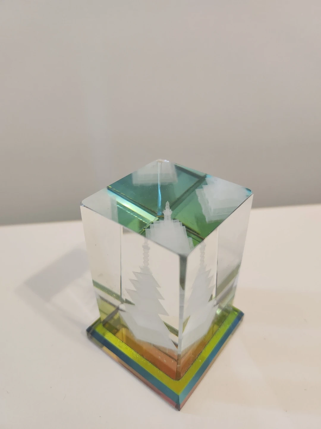 Decorative Glass Crystal Cube with Etched Tree Design π