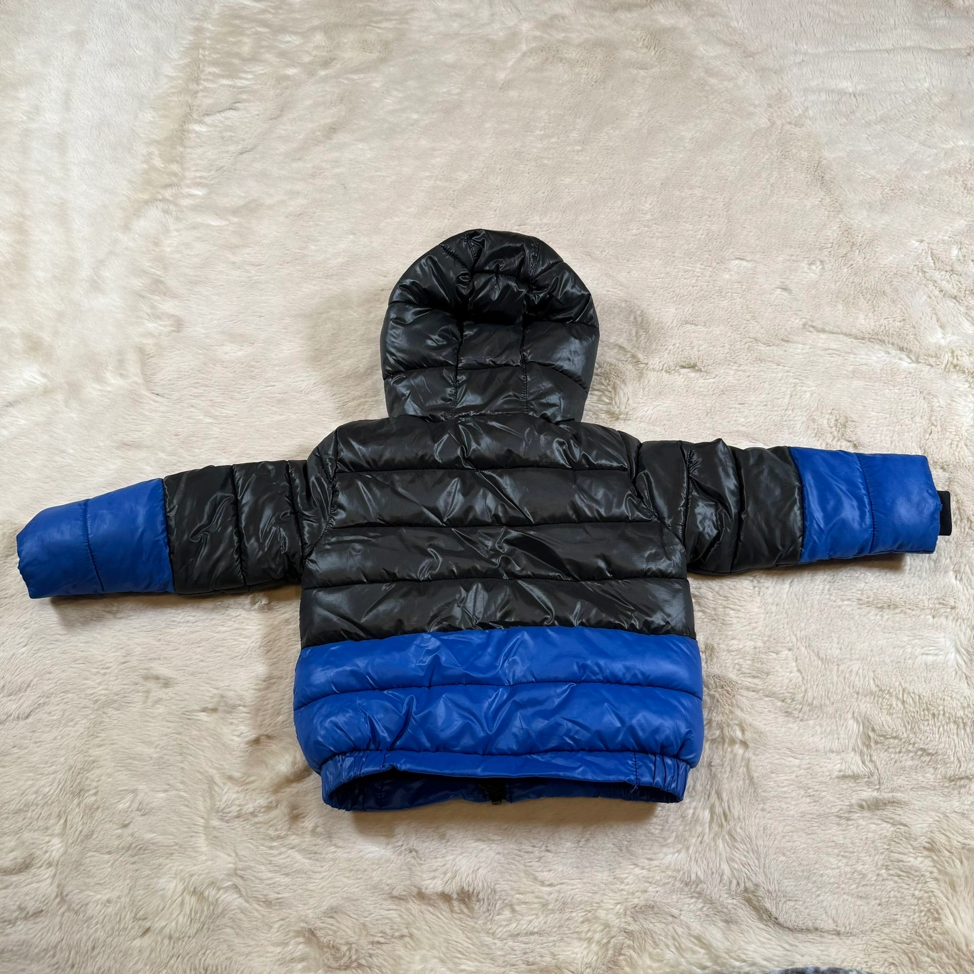 Nike Coat Toddler Boys 18 Months Puffer Jacket Black Blue Sportswear Colorblock Hooded