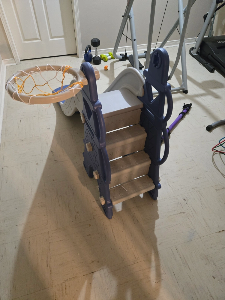 Selling a fun slide for kids, complete with a basketball hoop! It's perfect for indoor or outdoor play and provides hours of entertainment. The slide is in great condition and ready for a new home. It's a great way to keep the little ones active and having fun!