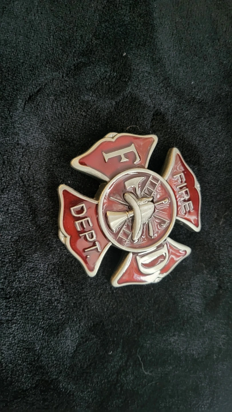 Set includes four decorative belt buckles featuring a horse scene, a deer scene, a firefighter emblem, and a motorcycle design. Each buckle is made of metal with detailed relief work. These would be great statement pieces for any belt! 10.00 each