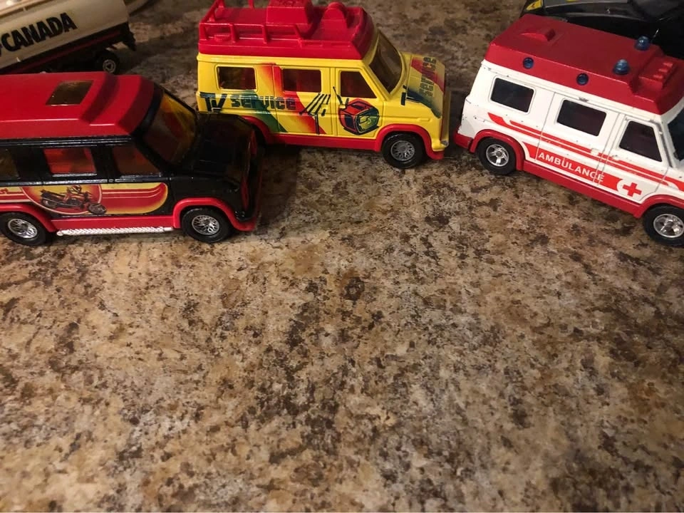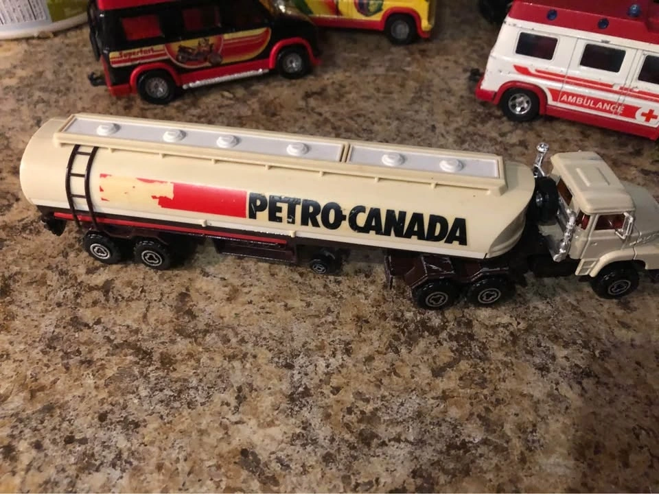 These toys are all in great condition. Some have a few dents and marks. The Petro Canada tanker has a bit of the red design that got ripped off from a sticker. Otherwise, they're great.