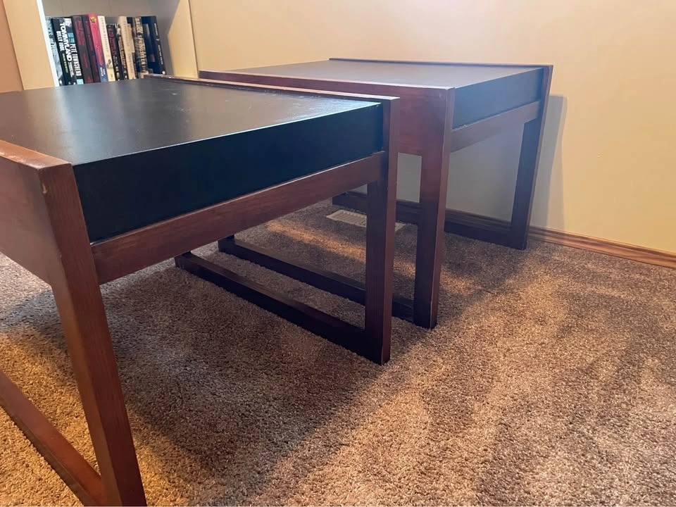Buy & Sell2 End Tables2 End Tables$30Black top with dark brown sides and legs. A few scuffs but otherwise in good condition. Dimensions: 28" Long, 23" Wide, 20" Tall.WHERE TO MEETCheck LocationView MapSELLERLiam MurrayRocky Ridge150 reviews0 chats·0 favorites·21 viewsSEND CHAT TO SELLERHi Liam Murray! I’m interested in your listing.Hi Liam Murray! I’m interested in your listing.Get the Karrot app to chatSign In to chat