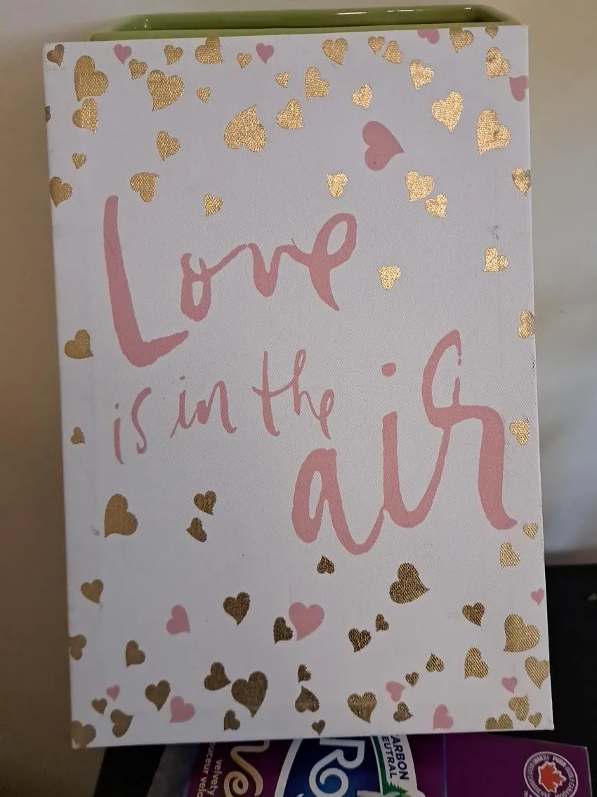 This canvas art features the phrase "Love is in the air" with a charming heart design. It's a delightful piece for adding a romantic touch to any room.