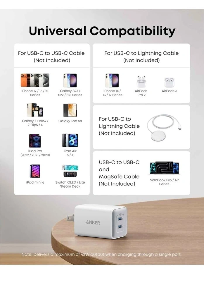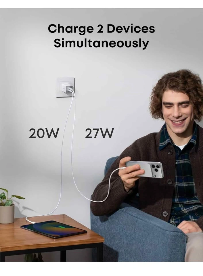Anker 47W USB C Nano Charger, 2 Port Compact Foldable GaN Charge