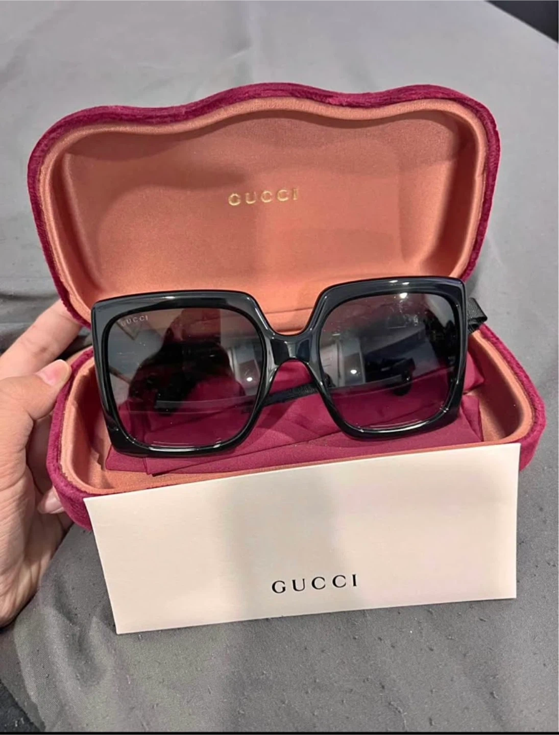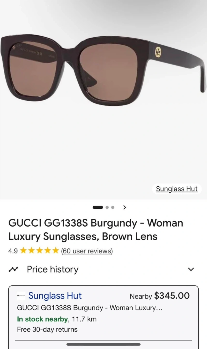 GUCCI GG1338S Burgundy luxury sunglasses. Features a stylish square frame with brown lenses. Comes with original case and authenticity card. A classic accessory for any wardrobe!…Brand New