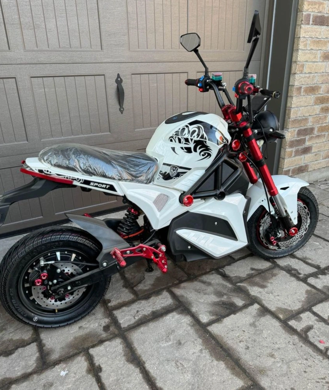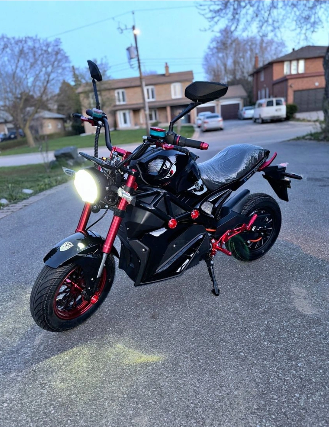 Brand new aggressive looking electric motorcycle. This Ebike is powered by 3000W Motor offering outstanding performance and speed of up to 75-80kms/hr. The Ebike is fully automatic, fueled by Brand new 72V 20Ah lead acid batteries.
