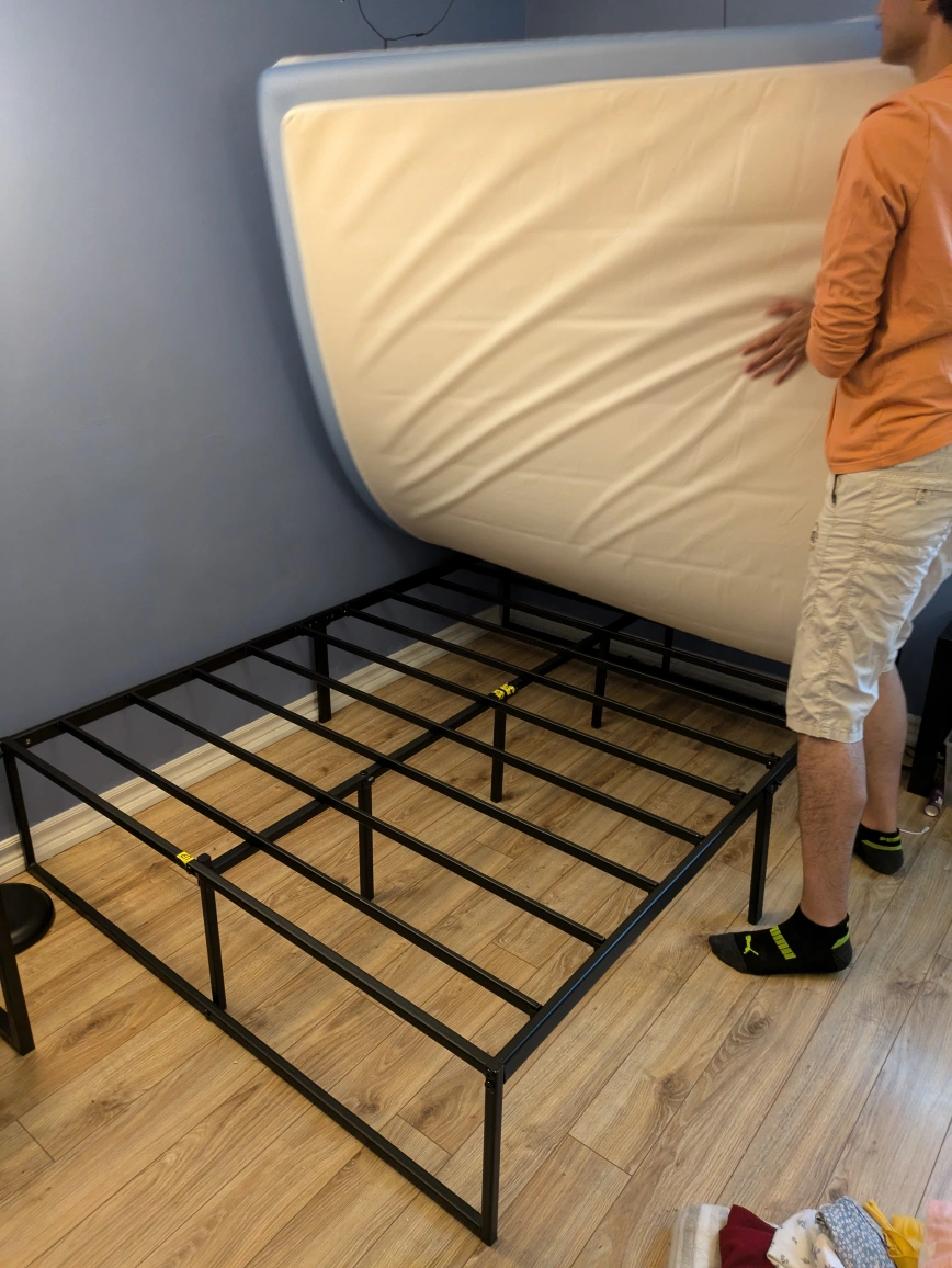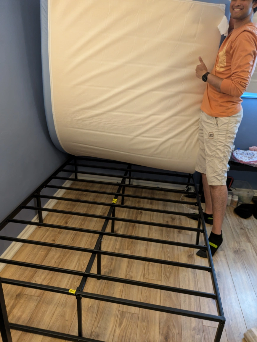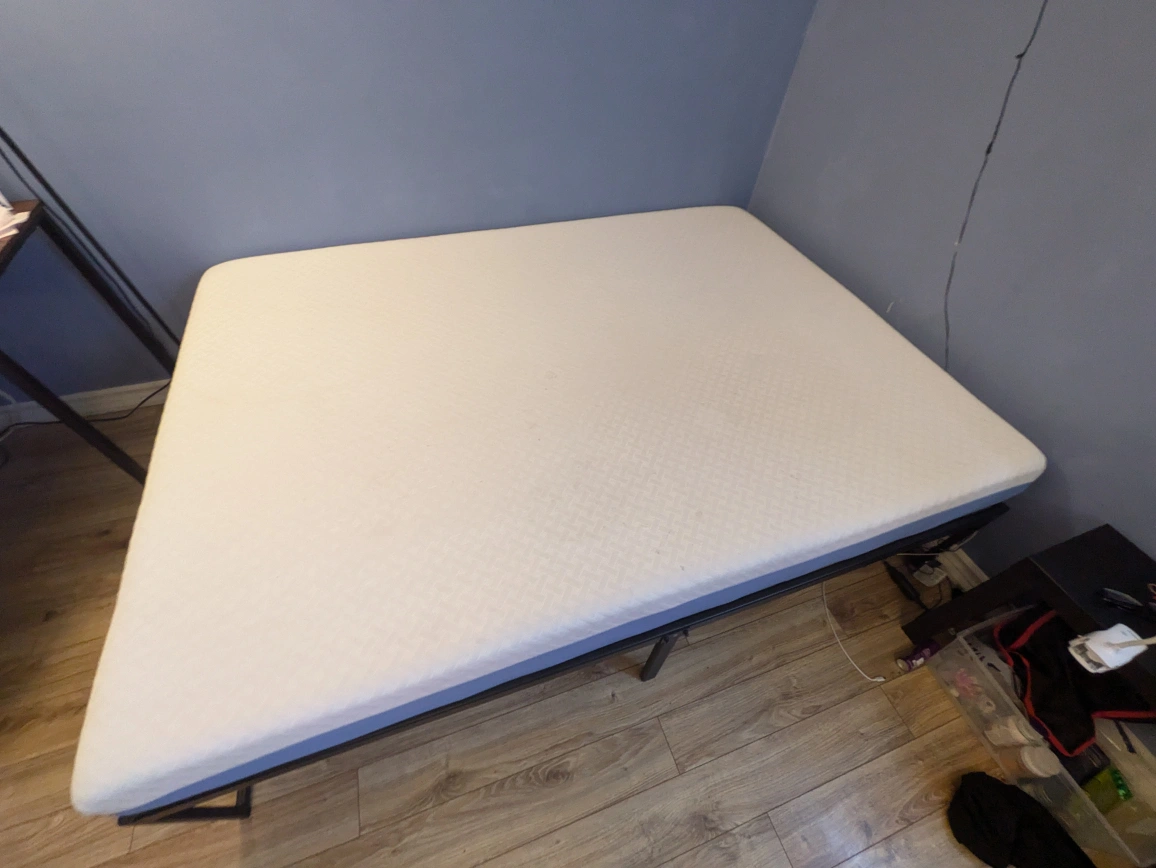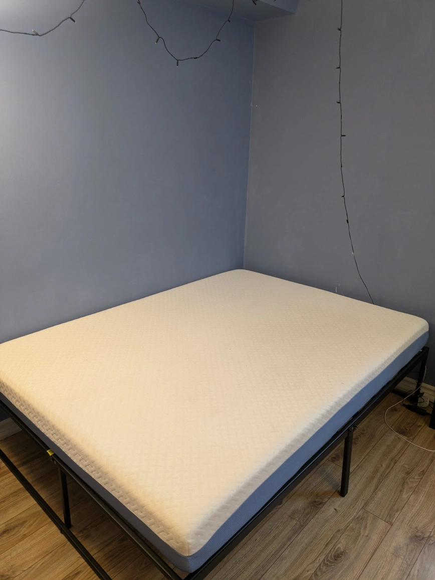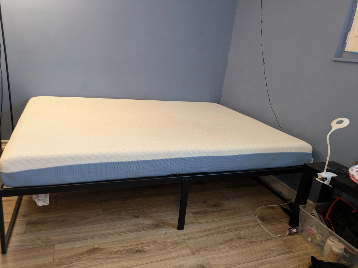 ‼️MOVING SALE ‼️ Selling a full size mattress with a metal bed frame. It's in perfect shape and as good as new. I bought the bed frame from IKEA and the mattress from Amazon. The mattress is a ZINUS 6 inch cooling foam mattress. DM for more questions :)