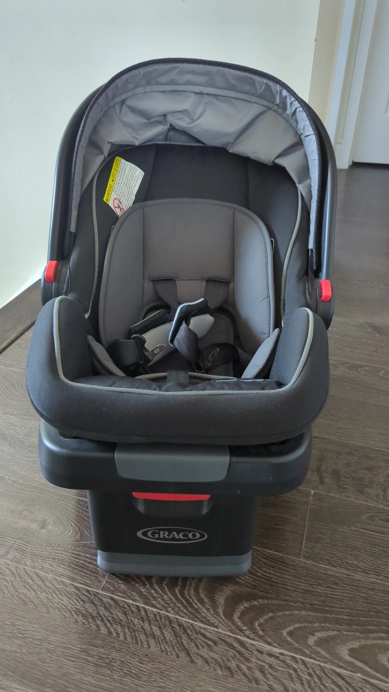 Selling a Graco SnugRide infant car seat in great condition! It comes with the base. Suitable for babies from 0+ months/mois to 3+ months/mois. Perfect for keeping your little one safe and comfy on the go