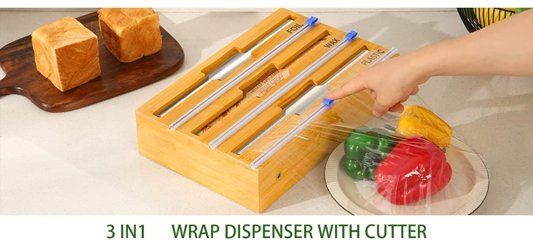 Foil and Plastic Wrap Dispenser with Cutter, Ziplock Bag Drawer Storage Organizer for Sandwich,Snack(3 wrap dispenser+ 5 Ziploc Storage+1 Extra Storage Box)