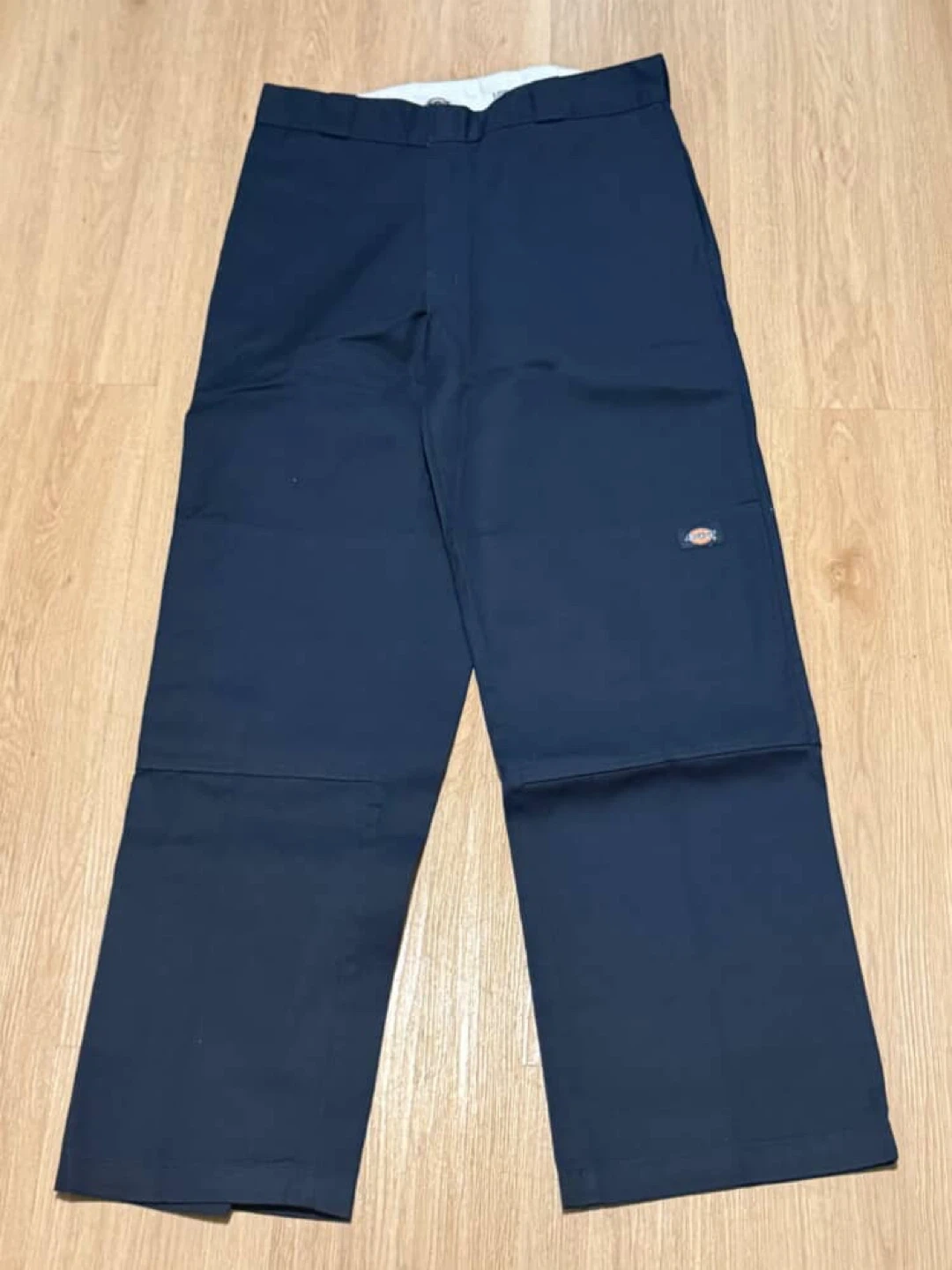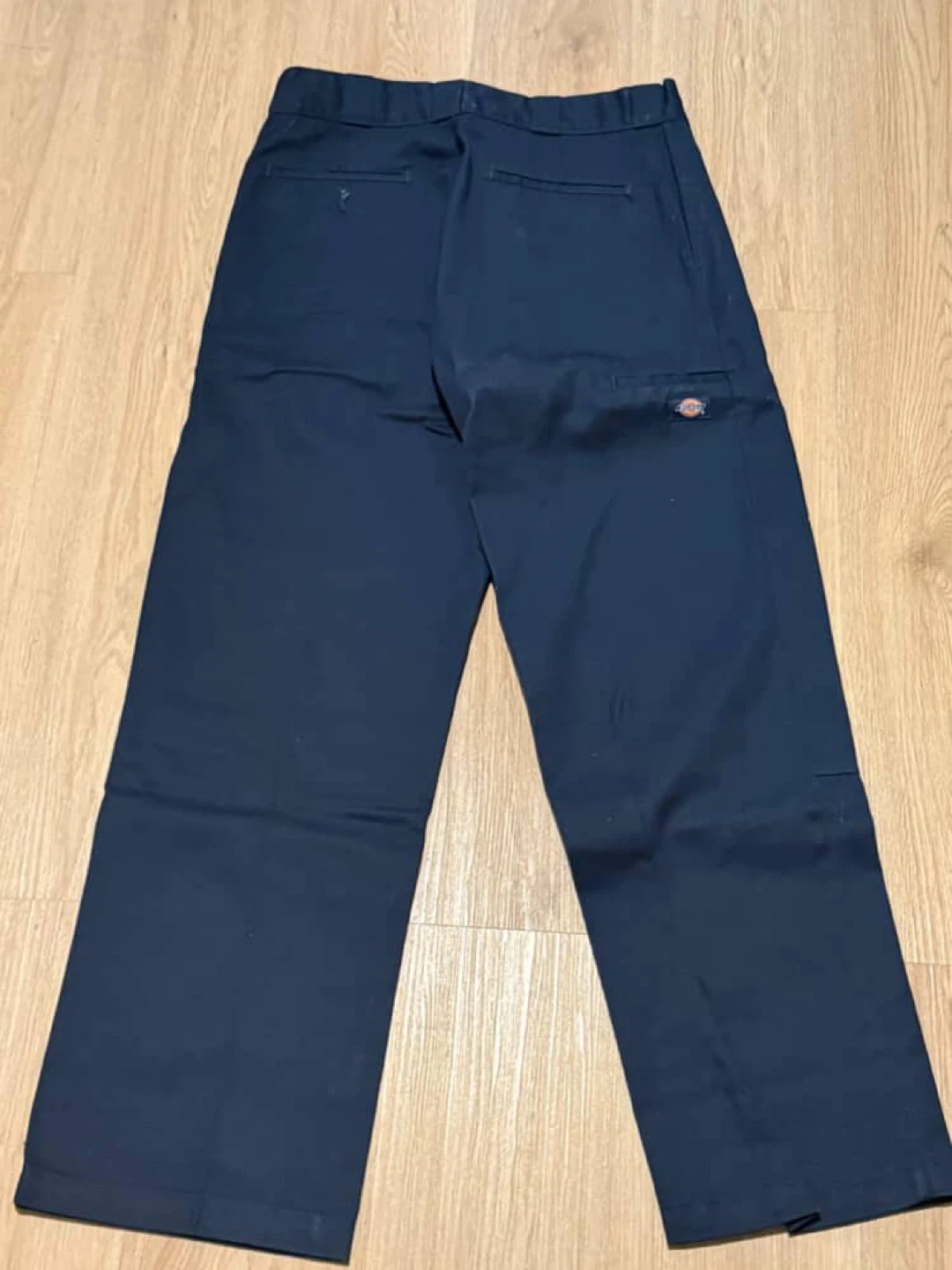 These are Dickies work pants in navy blue. They are a durable twill fabric. These pants are great for everyday work or casual wear!