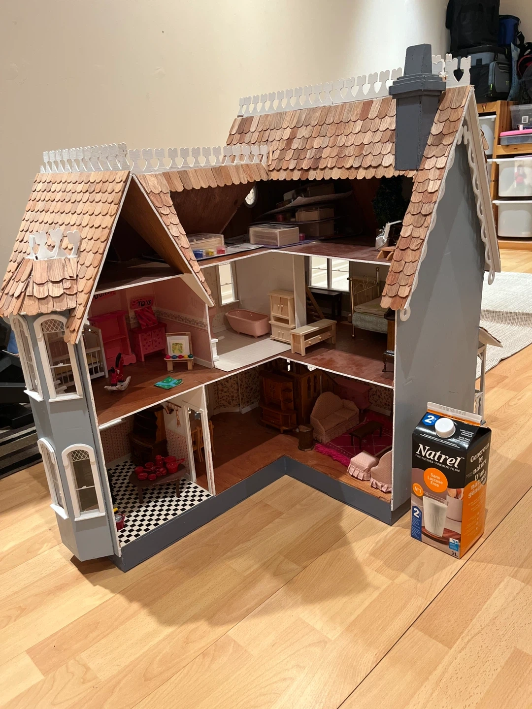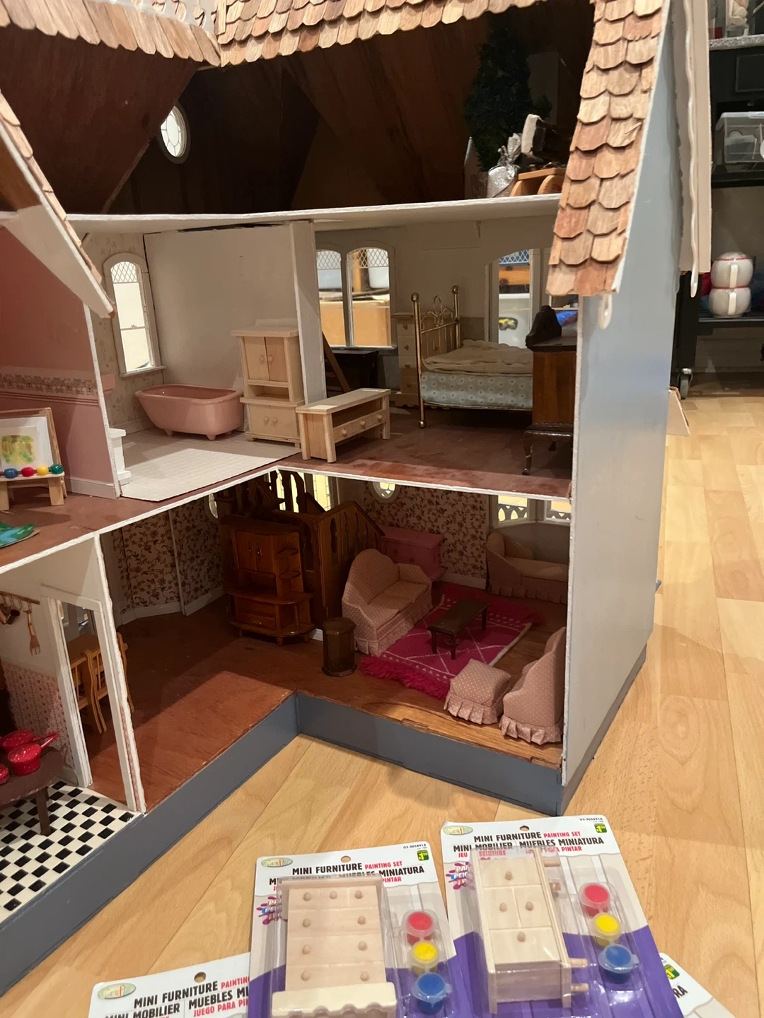 Selling a dollhouse with lots of miniature furniture! It's in great shape and ready for a new owner. Includes various rooms and accessories for imaginative play